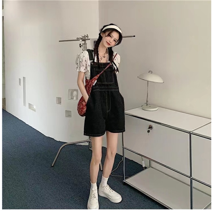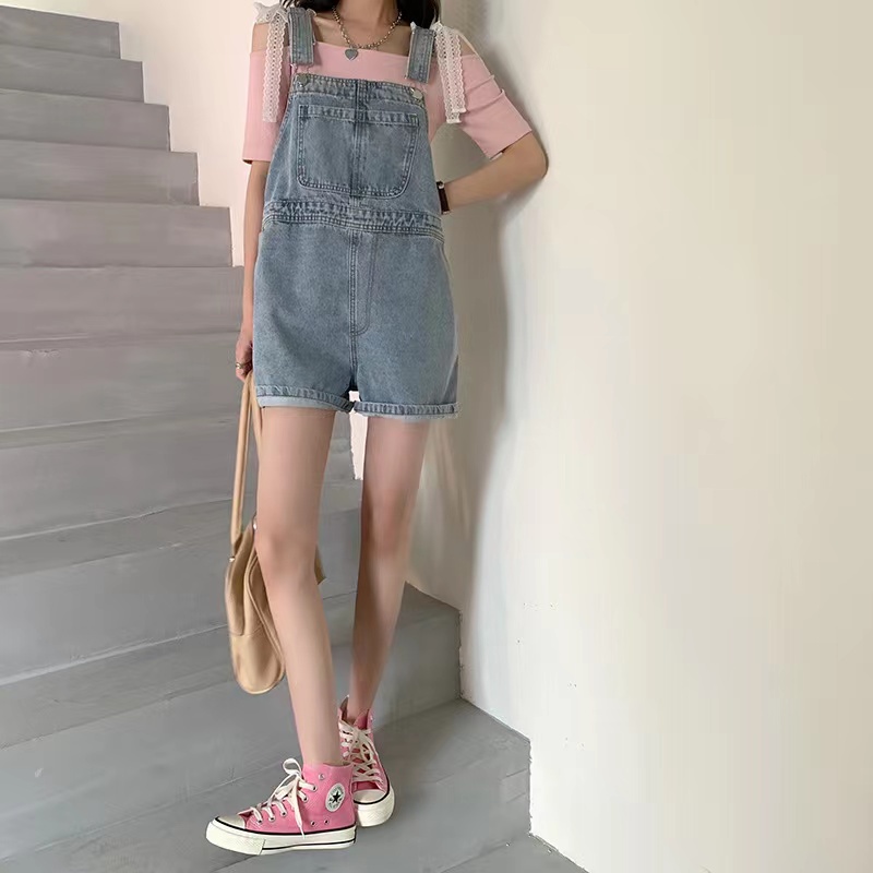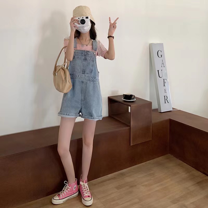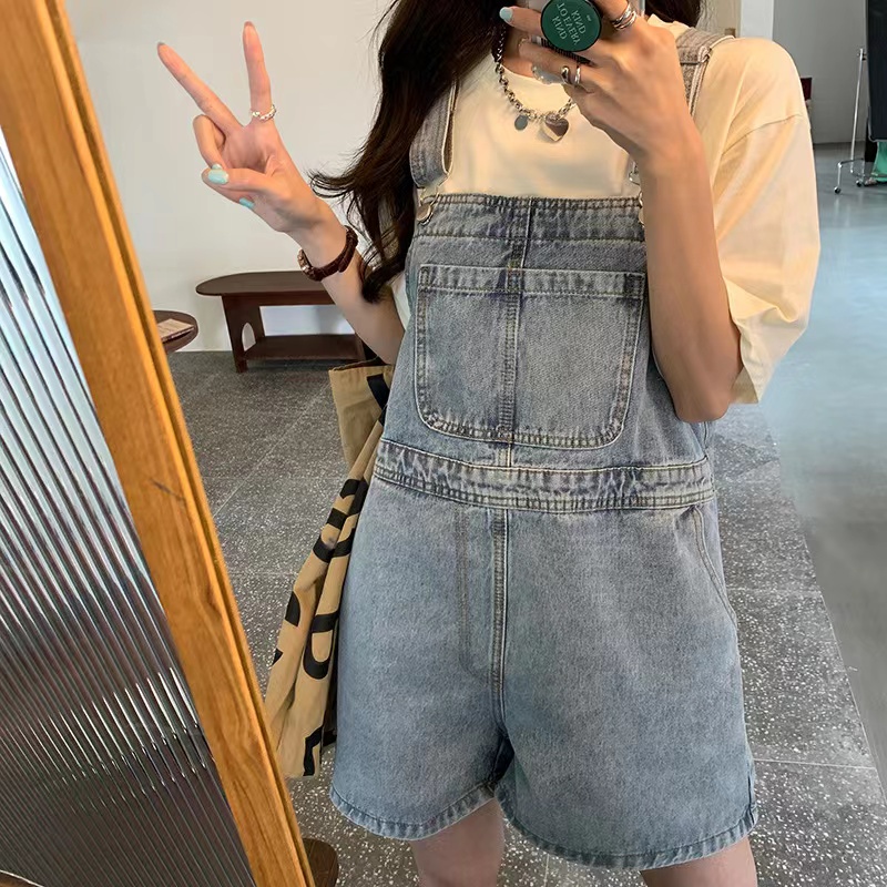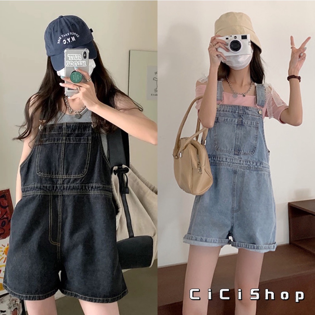 Cicishop(K010)เอี้ยมขาสั้นยีนส์เบิ้ลปลายขา ทรงขากว้างใส่น่ารัก สายแค้มป์ปิ้งห้ามพลาด