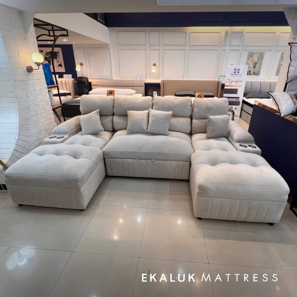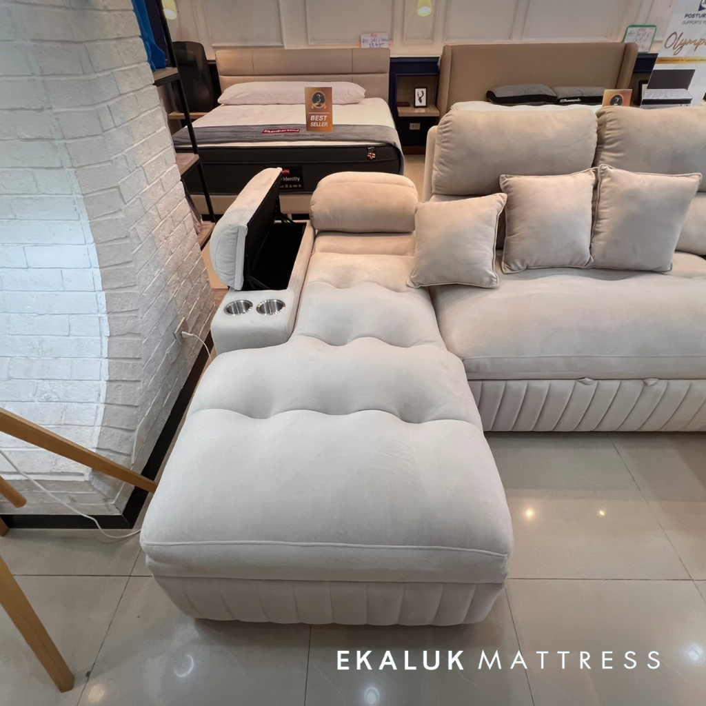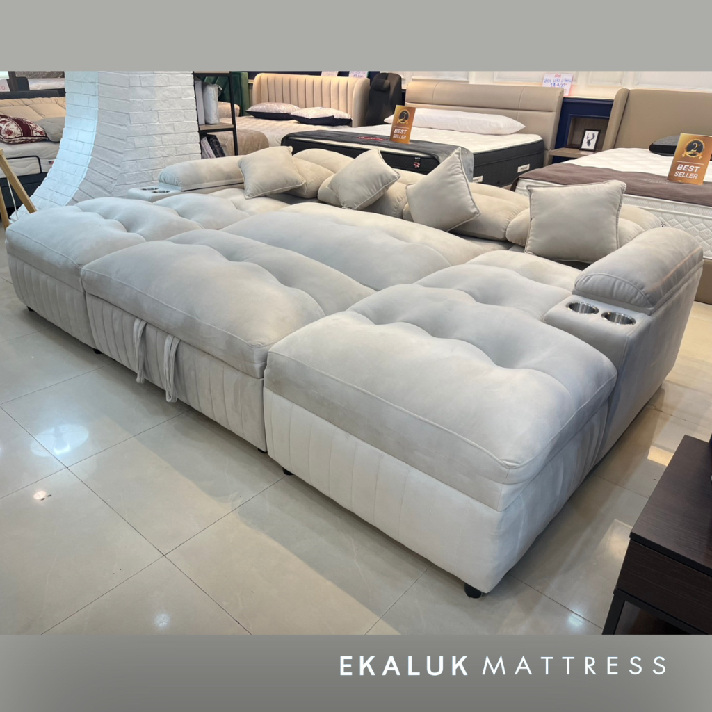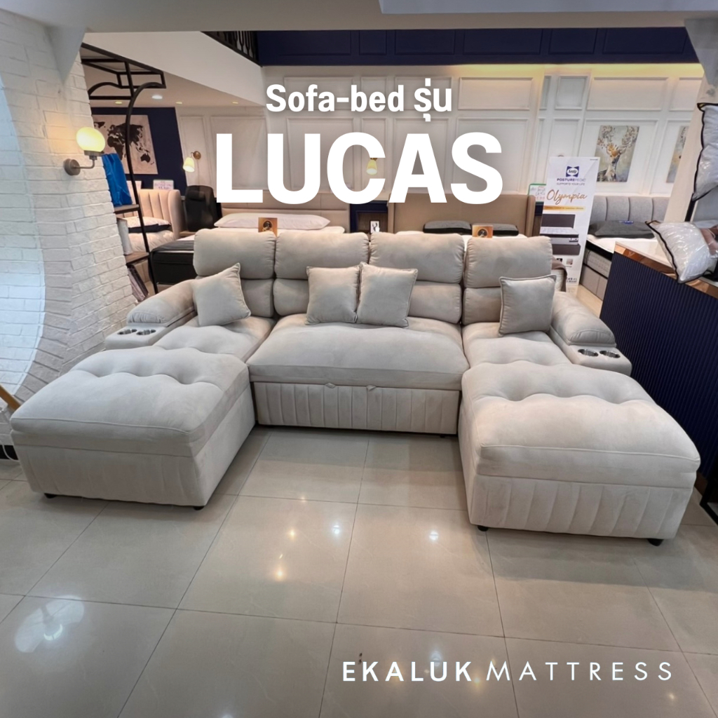 Enzo Calvin โซฟาเบด รุ่น Lucas U-shape 300 , 350 ซม. ปรับเอนนอนได้ หุ้มผ้า