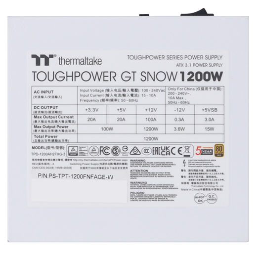 POWER SUPPLY (อุปกรณ์จ่ายไฟ) THERMALTAKE TOUGHPOWER GT SNOW 1200W 80 PLUS GOLD ATX WHITE-PS-TPT-1200FNFAGE-W