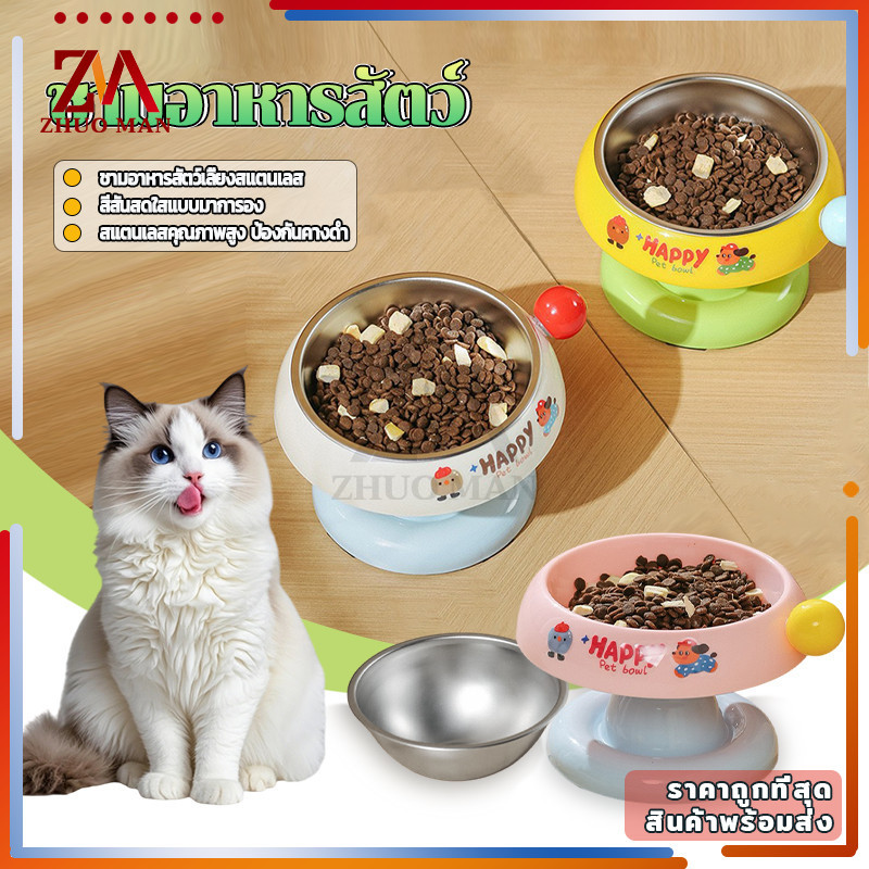 ชามอาหารสัตว์เลี้ยง ชามใส่อาหารแมว ชามแมว ที่วางอาหารสุนัข ชามอาหารหมาแมว ถอดออกได้ ทรงยกสูง มียางกันลื่น