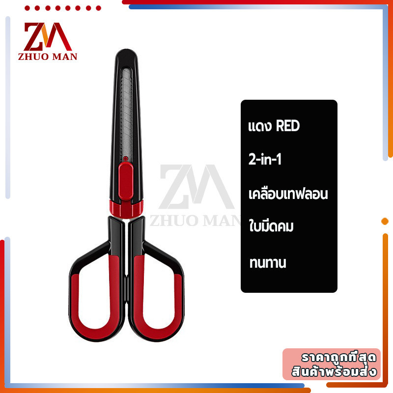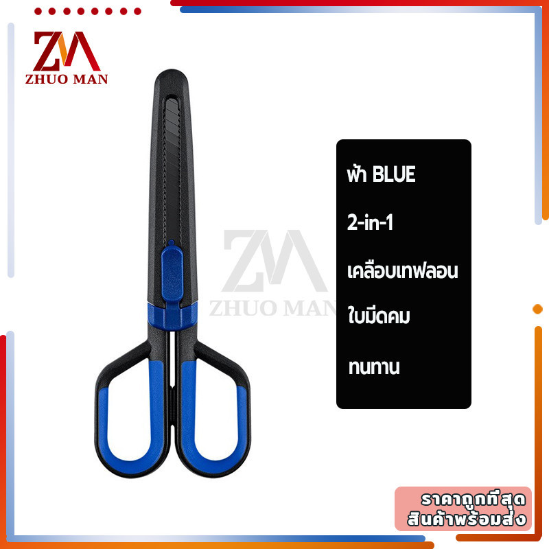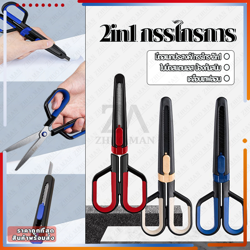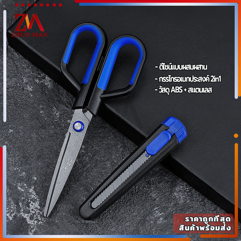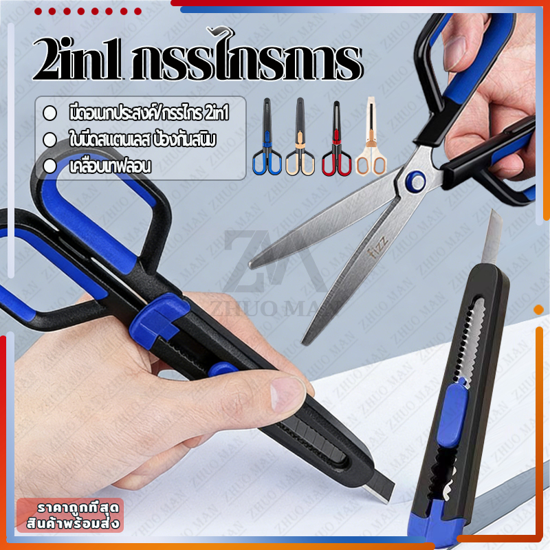 2in1 กรรไกรคัดเตอร์ กรรไกรการ กรรไกรการเคลือบฟลูออรีน คมกริบ เป็นกรรไกรและตรงปลอกเป็นคัทเตอร์ในตัว ตัดเทปกาวได้