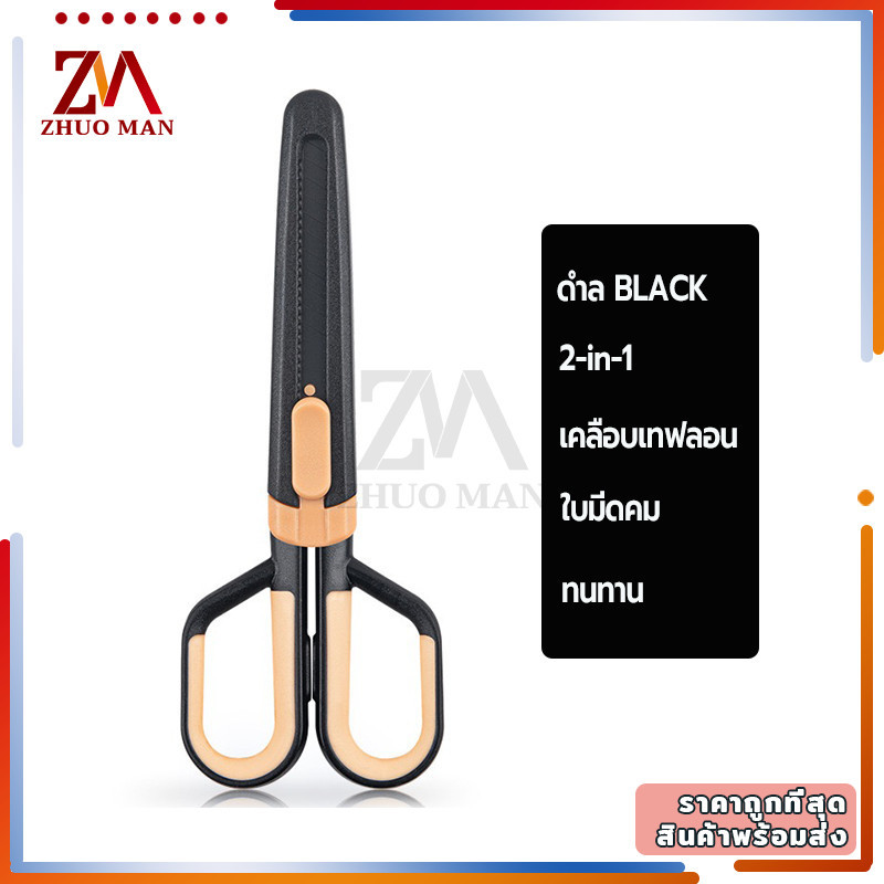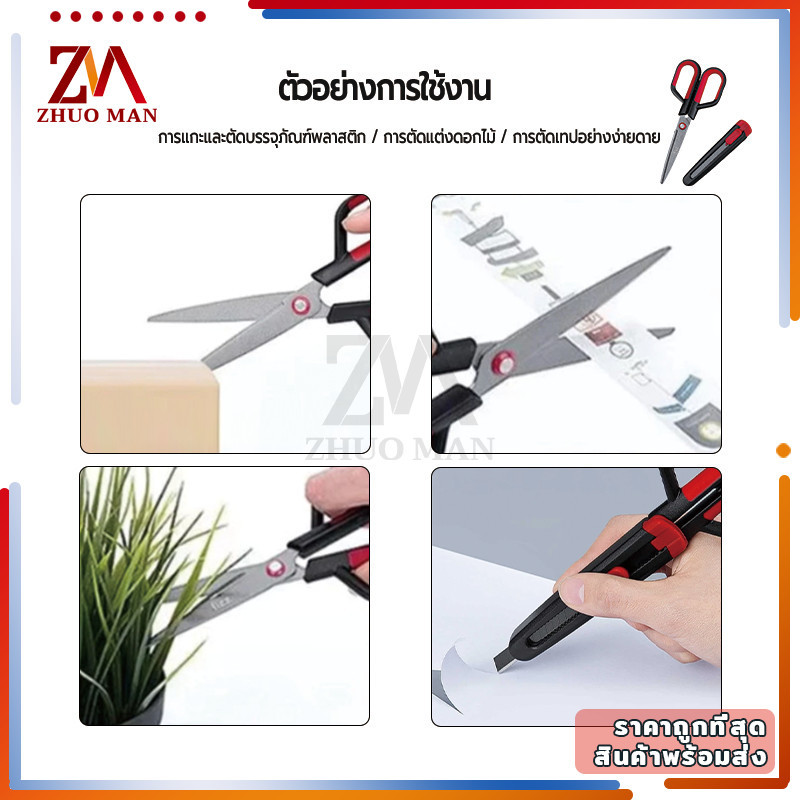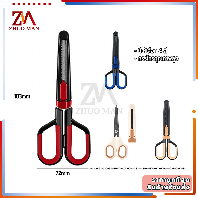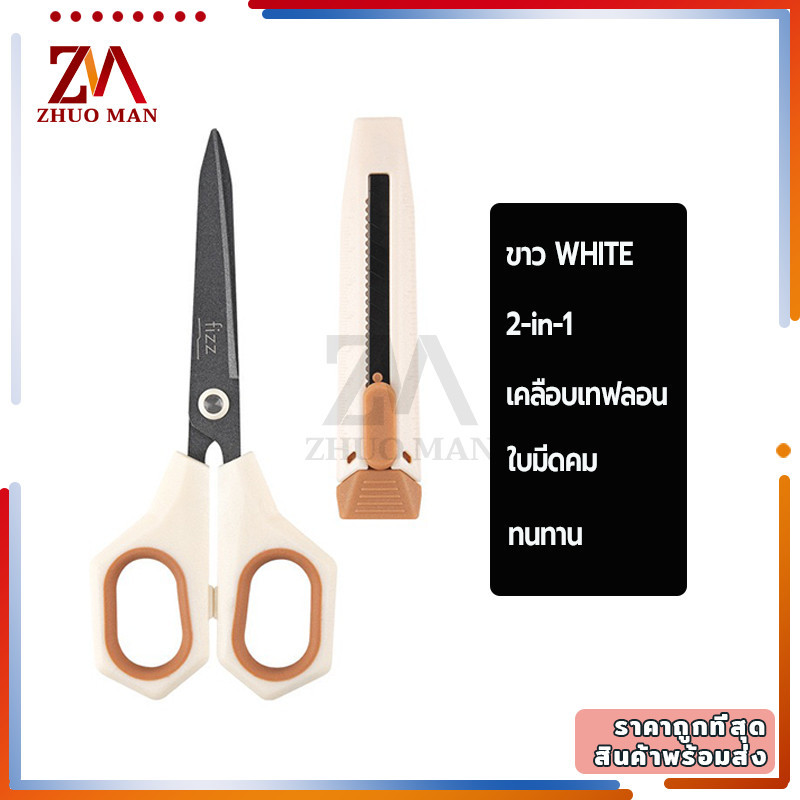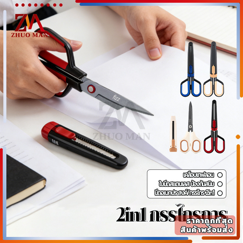 2in1 กรรไกรคัดเตอร์ กรรไกรการ กรรไกรการเคลือบฟลูออรีน คมกริบ เป็นกรรไกรและตรงปลอกเป็นคัทเตอร์ในตัว ตัดเทปกาวได้