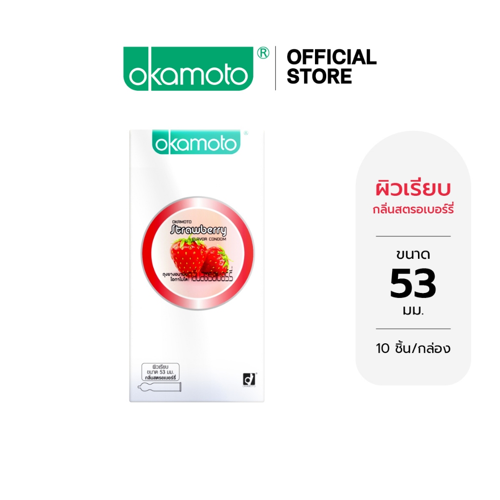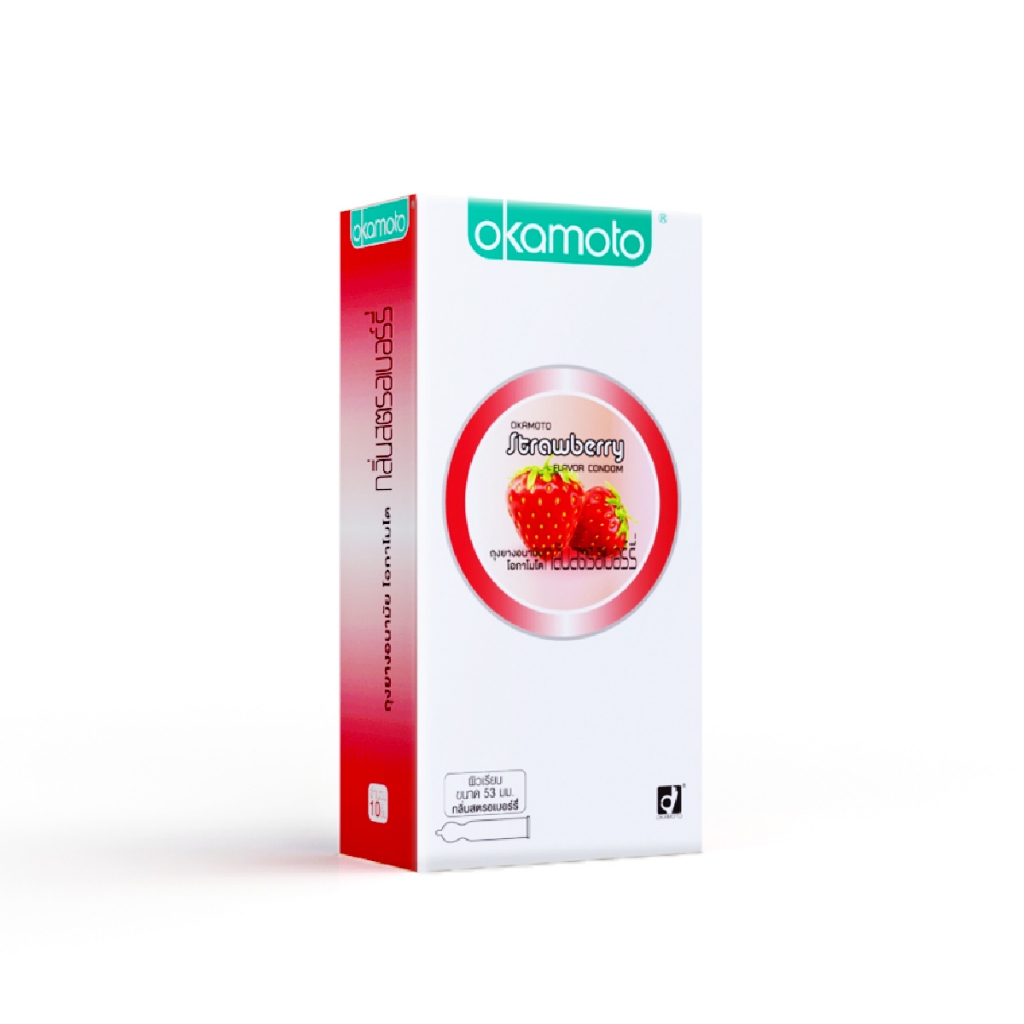 Okamoto ถุงยางอนามัย โอกาโมโต กลิ่นสตรอเบอร์รี่ แฟมมิลี่แพ๊ค กล่อง 10 ชิ้น x 1