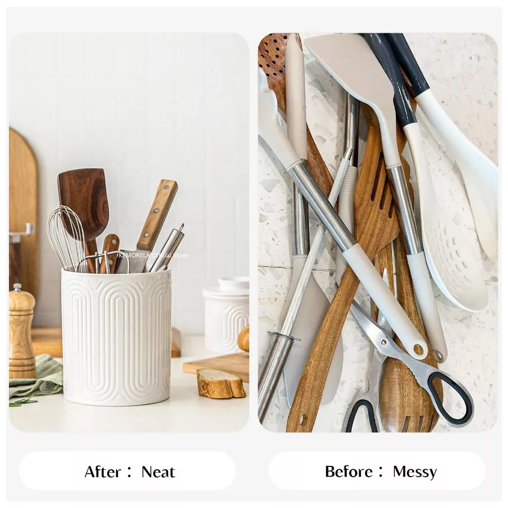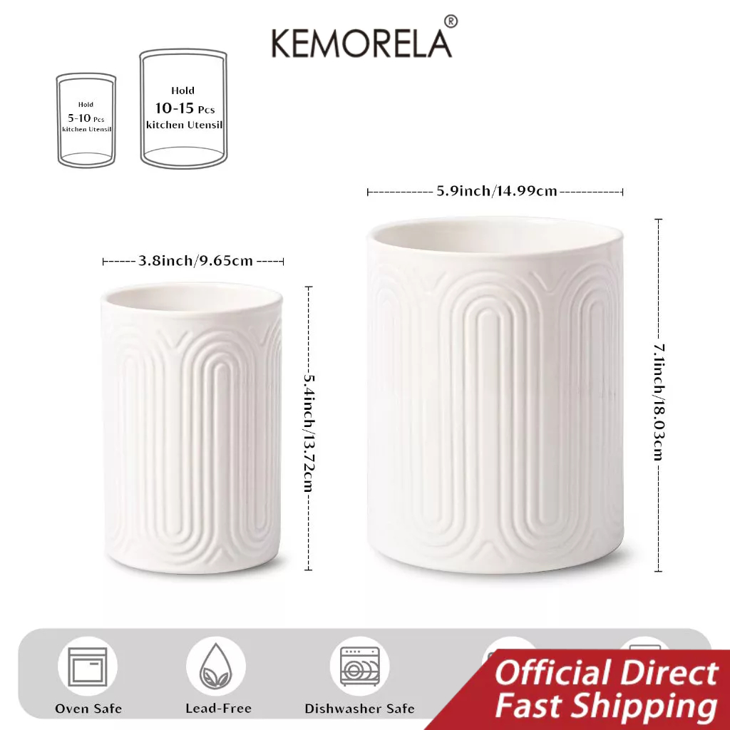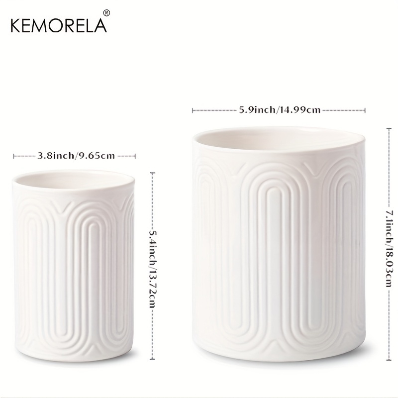 KEMORELA ชุดที่ใส่ภาชนะเซรามิก – 7.1 "&5.4" อุปกรณ์จัดภาชนะในครัวสําหรับเคาน์เตอร์, หม้อภาชนะออกแบบโค้งสําหรับตกแต่งบ้านและเคาน์เตอร์ครัว, ของขวัญขึ้นบ้