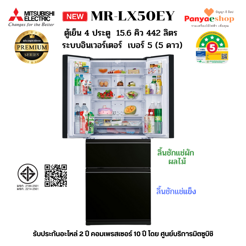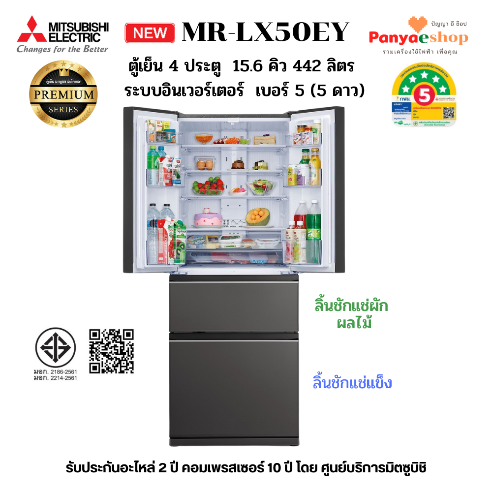 MITSUBISHI ตู้เย็น 4 ประตู รุ่น MR-LX50EY (LX Glande) จุ 15.6 คิว Bottom Freezer ทำน้ำแข็งอัตโนมัติ