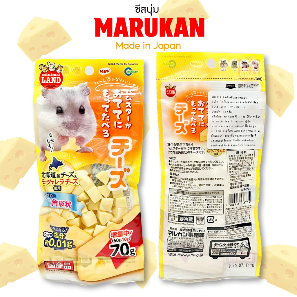 MARUKANชีสนิ่ม(สินค้านำเข้าจากญี่ปุ่น) ชีสคุณภาพเนื้อสัมผัสนิ่มสัตว์เลี้ยงกัดง่าย ชูการ์ แฮมเตอร์ เม่นแคระ ดอร์เมาส์