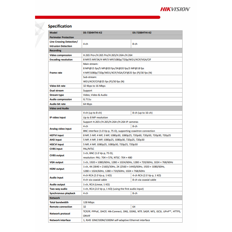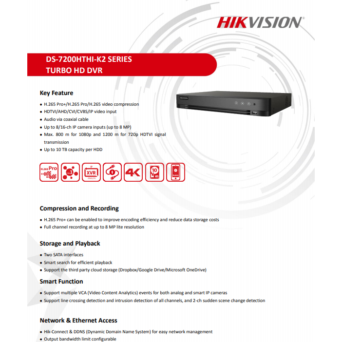 HIKVISION 4K 8MP TURBO HD DVR เครื่องบันทึกภาพ รุ่น DS-7204HTHI-K2(S) 4CH 5ระบบ