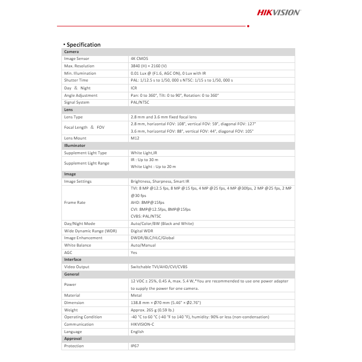 HIKVISION กล้องวงจรปิด 8MP รุ่น DS-2CE16U0T-LF 2.8/3.6mm.(1)