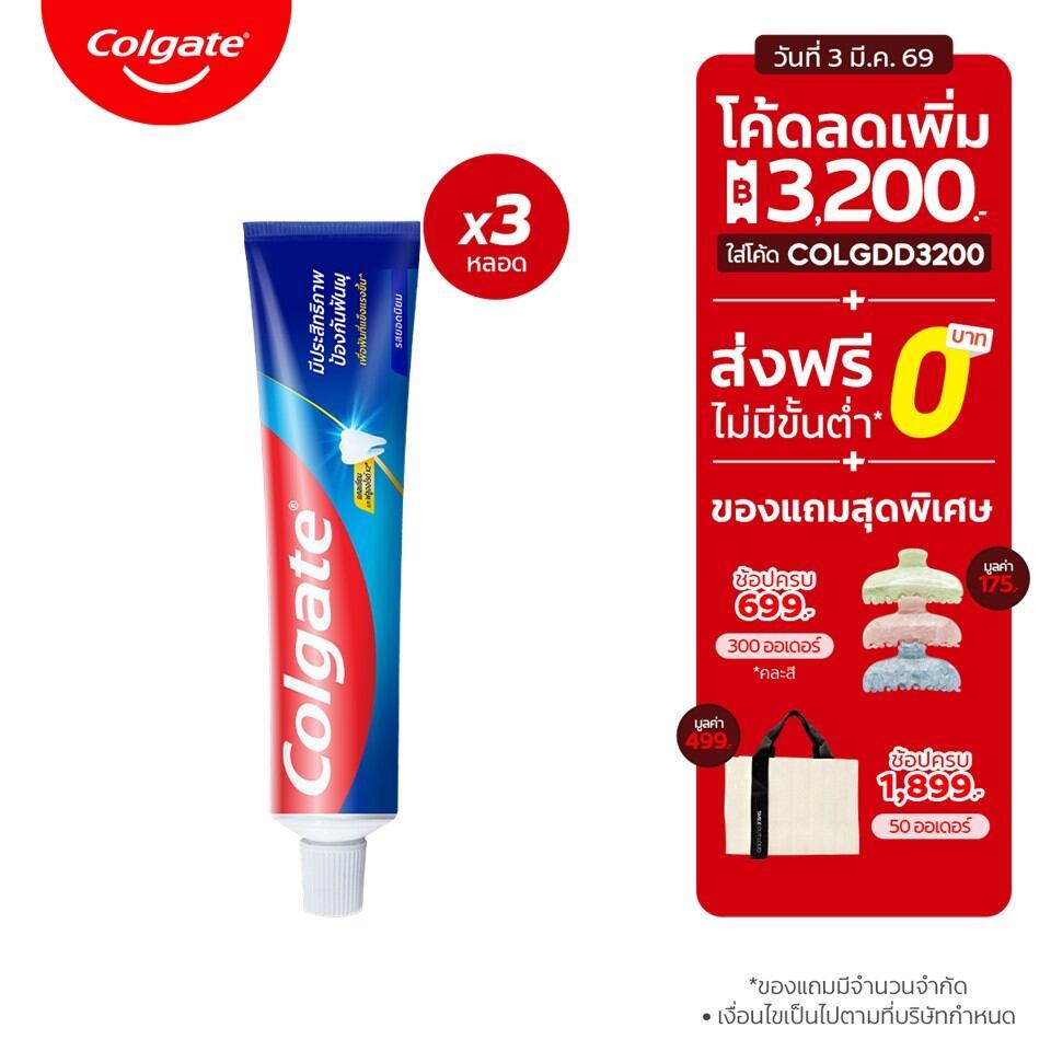 [มี 2 แพ็คให้เลือก] ยาสีฟัน คอลเกต รสยอดนิยม 150 กรัม ช่วยป้องกันฟันผุ Colgate Great Regular toothpaste 150g
