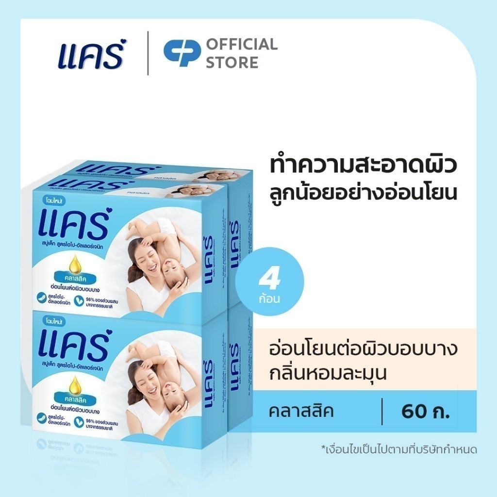 แคร์ คลาสสิค 60 กรัม รวม 4 ก้อน ทำความสะอาดอย่างอ่อนโยน (สบู่ก้อน) Care Classic Bar Soap 60g x4