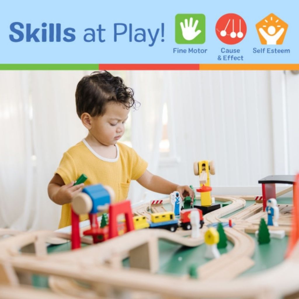 (ของแท้ USA) ชุดรางต่อรถไฟ พร้อมราง (75 x 45x 16 cm) Melissa Doug Wooden Railway Set ของเล่นเด็ก 701