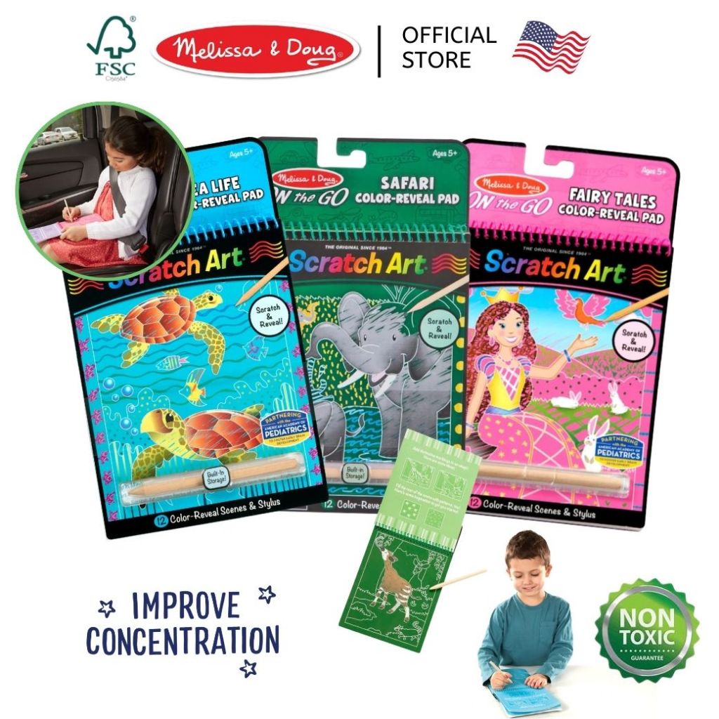 (ของแท้ USA) กระดาษขูดสีรุ้ง ของเล่นศิลปะ DIY Scratch Art Melissa & Doug สมุดระบายสี เสริมสมาธิ