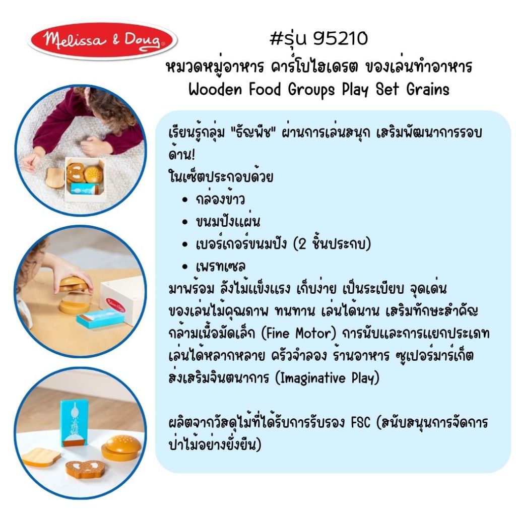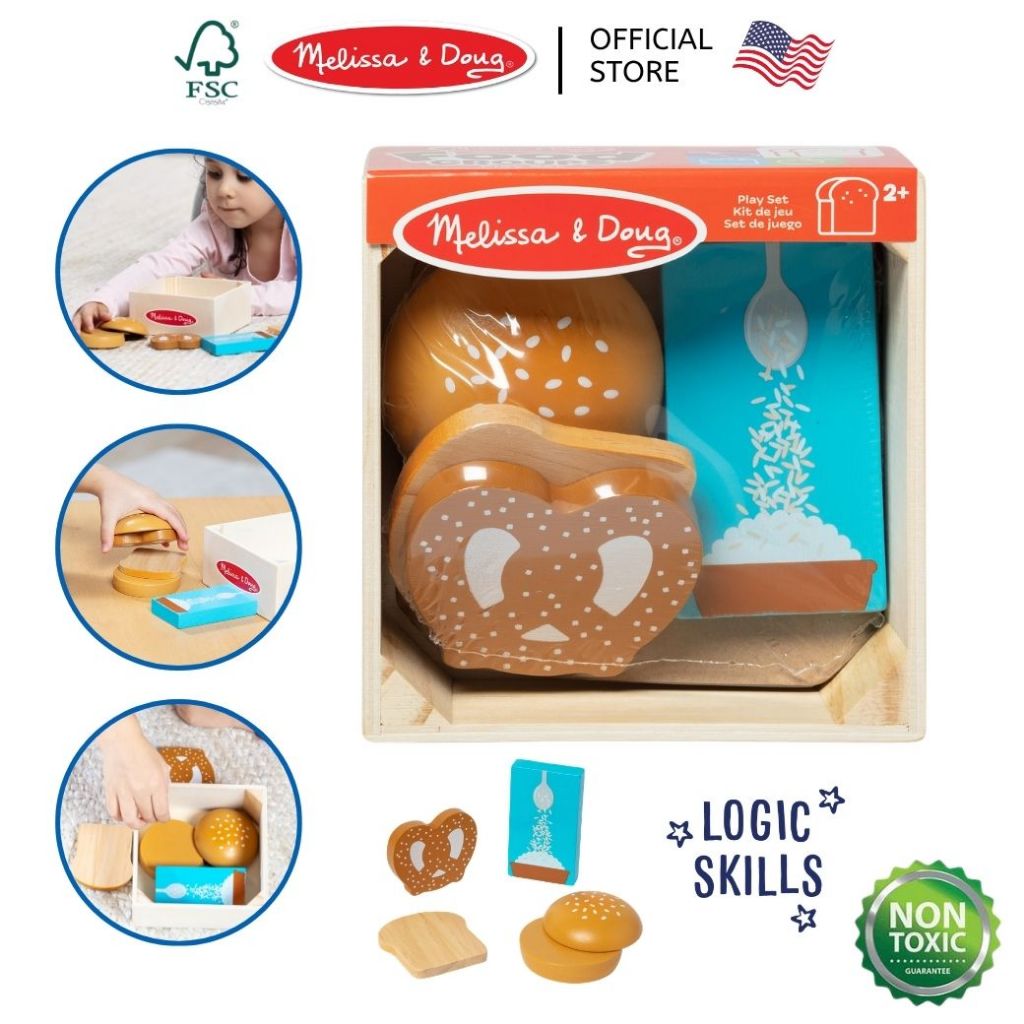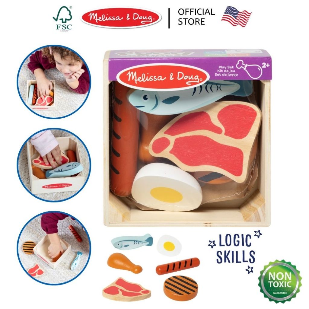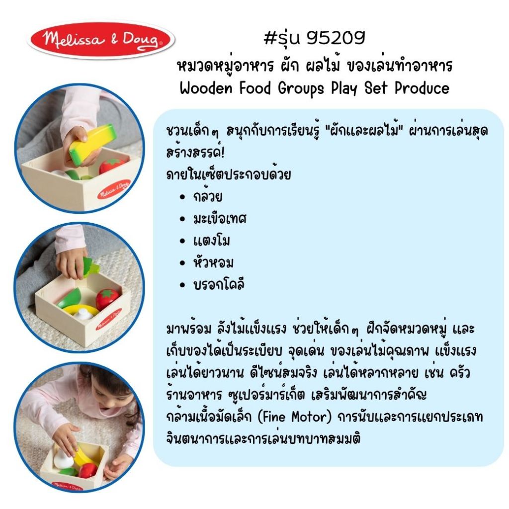 (ของแท้ USA) ของเล่นไม้อาหาร 5 หมู่ เนื้อสัตว์ ผัก ผลไม้ Wooden Food Groups Play Set Melissa & Doug