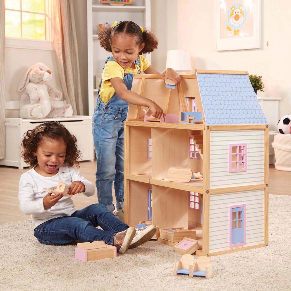 (ของแท้ USA) ของเล่นบ้านตุ๊กตาขนาดใหญ่ + เฟอร์ 19 ชิ้น Melissa & Doug Wooden Dollhouse (71x61x40cm)