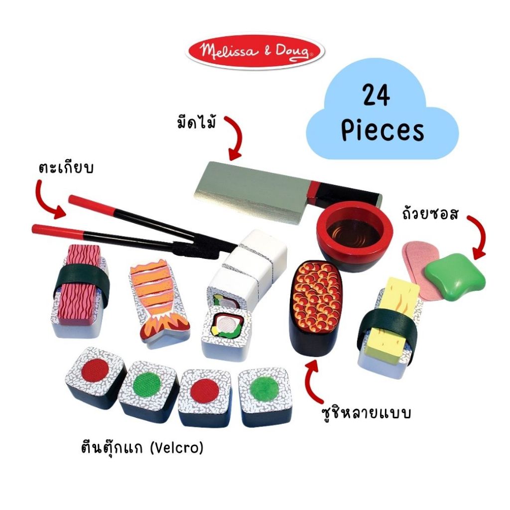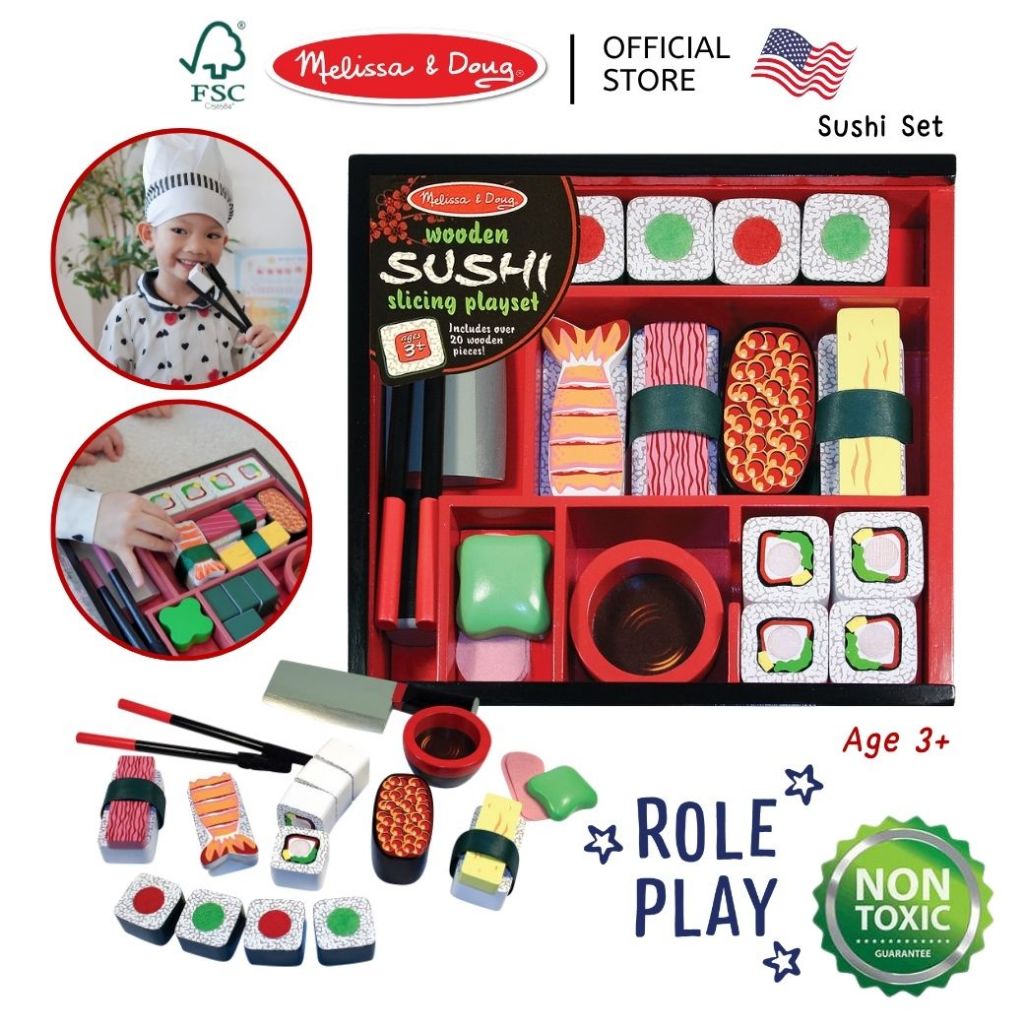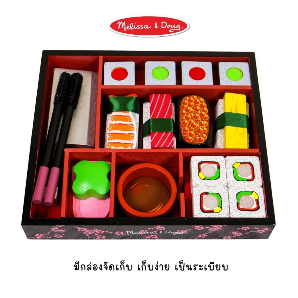 (ของแท้ USA) ของเล่นซูชิไม้ หั่นได้ พร้อมอุปกรณ์ครบ Melissa Doug Sushi Wooden Play Set ทำอาหาร 2608
