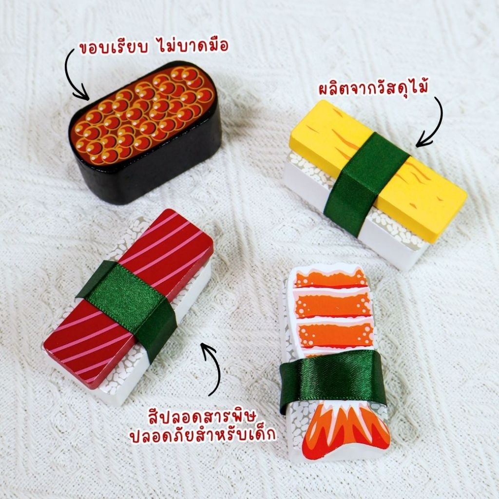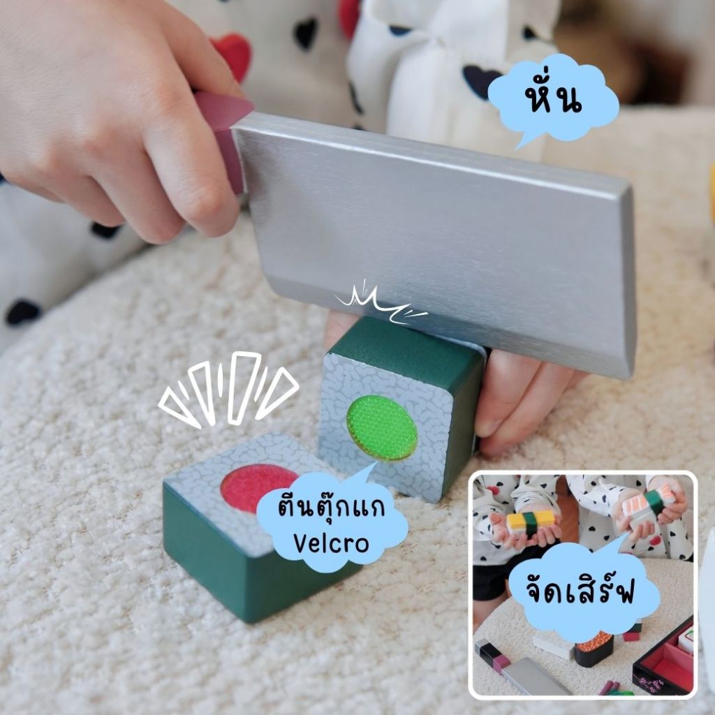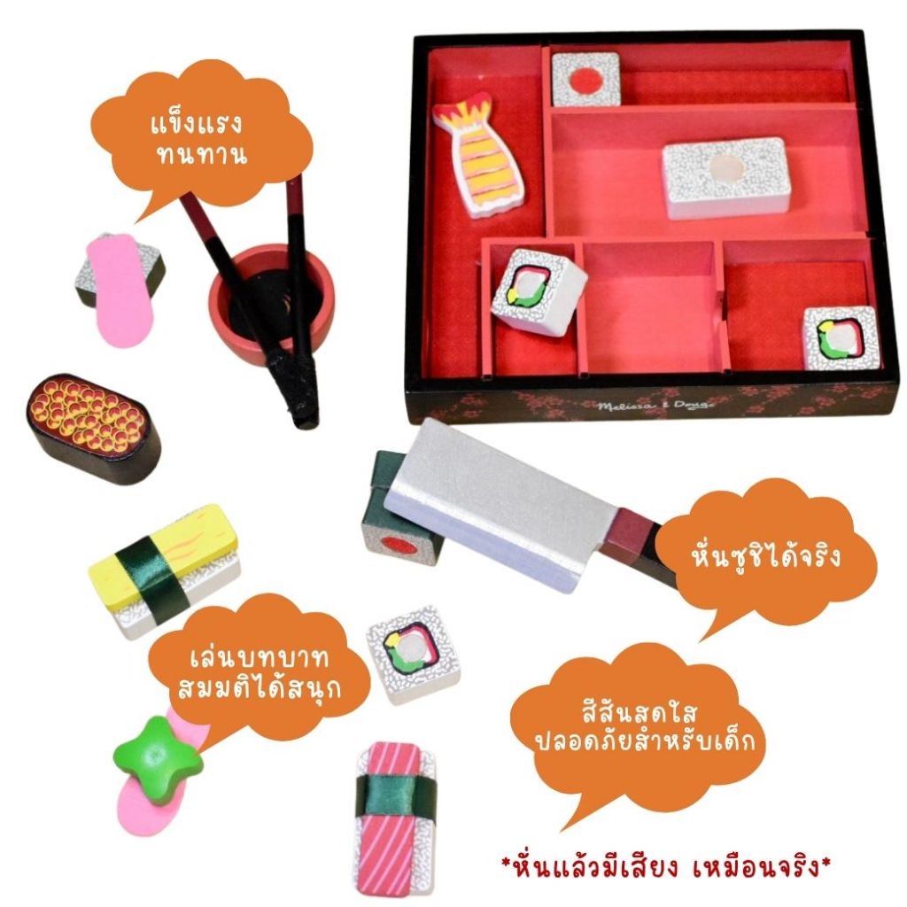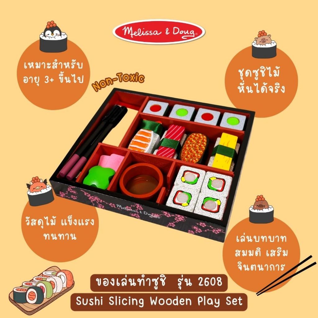 (ของแท้ USA) ของเล่นซูชิไม้ หั่นได้ พร้อมอุปกรณ์ครบ Melissa Doug Sushi Wooden Play Set ทำอาหาร 2608