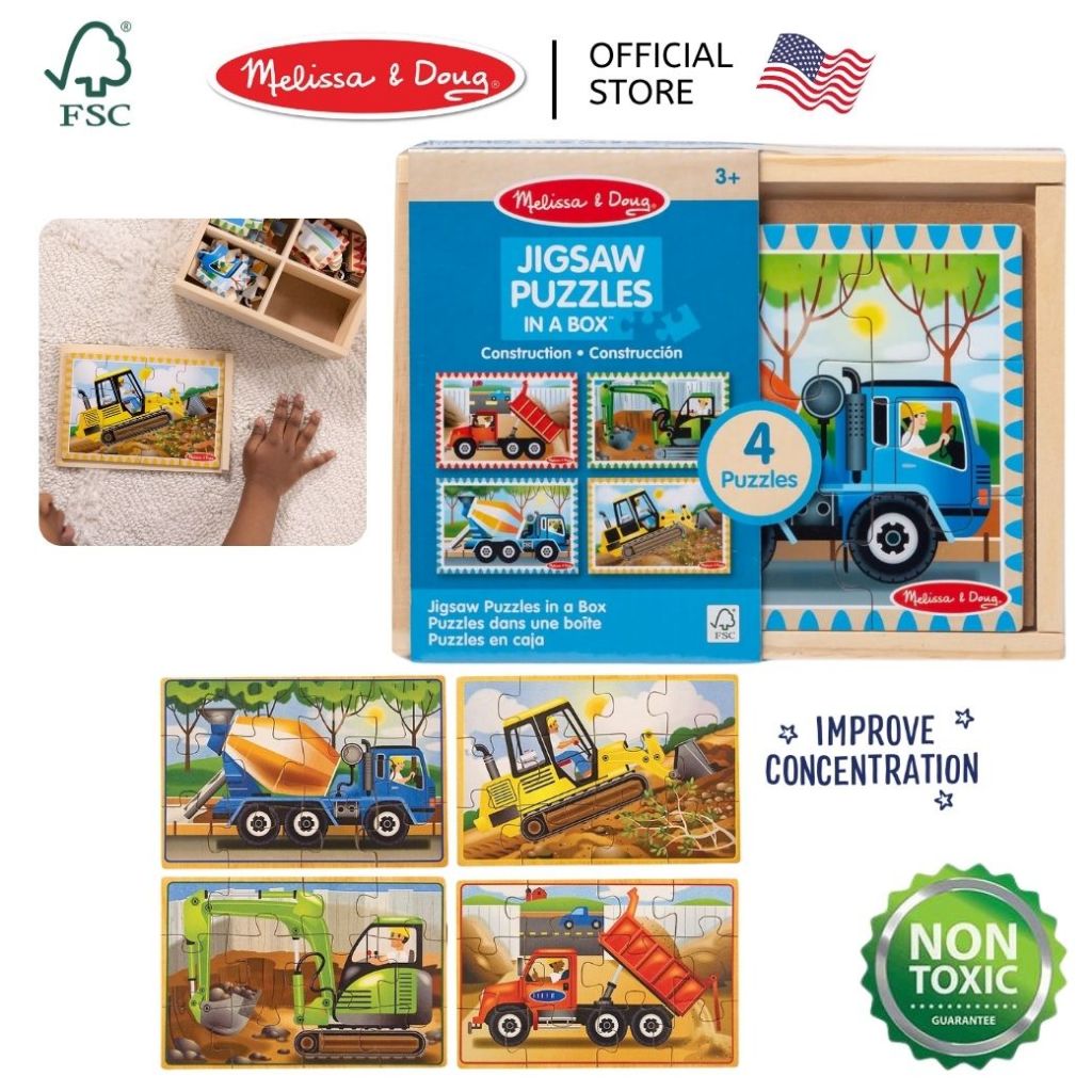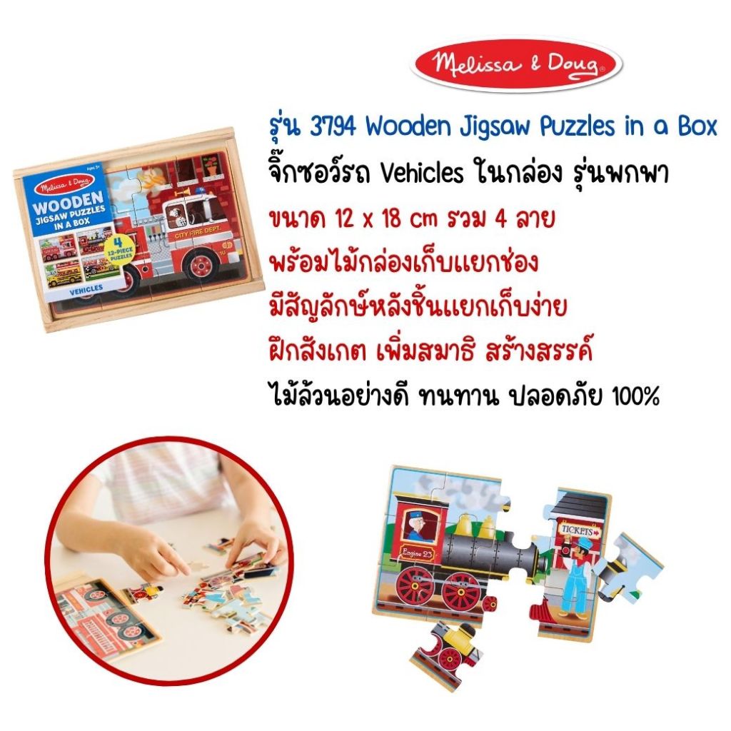 (1แถม1) สุดคุ้ม! จิ๊กซอว์ 12 ชิ้น 4 ภาพ ไดโน รถ สัตว์ Wooden Jigsaw Puzzle Melissa & Doug 4-in-1