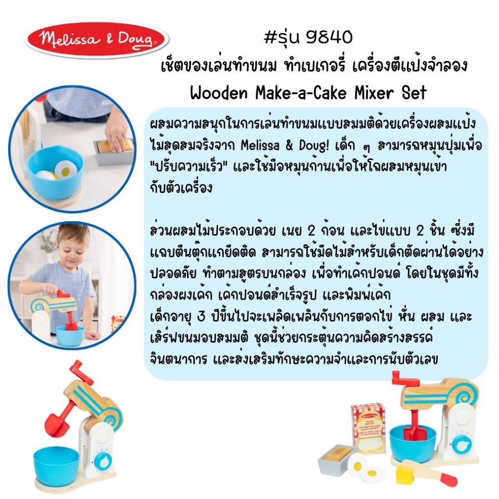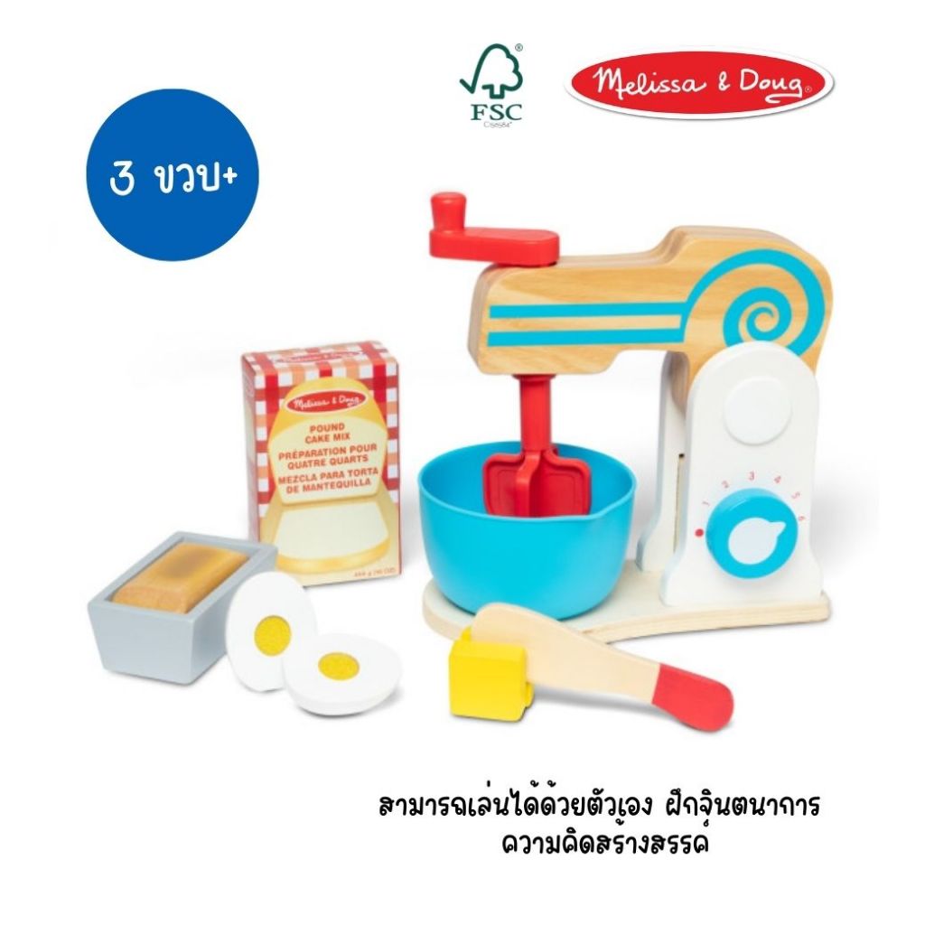 (ของแท้ USA) เช็ตของเล่นทำขนม ทำเบเกอรี่ อาหาร Wooden Make-a-Cake Mixer Set Melissa & Doug ครัว 9840