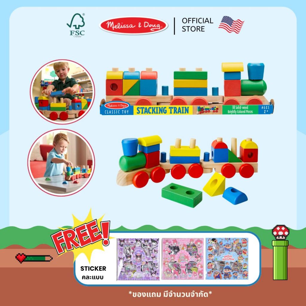 (ฟรี!ของแถม) บล๊อคต่อ ของเล่นรถไฟ ตัวต่อ Stacking Train Melissa & Doug มอนเตสเซอรี่ ของเล่นเด็ก 572