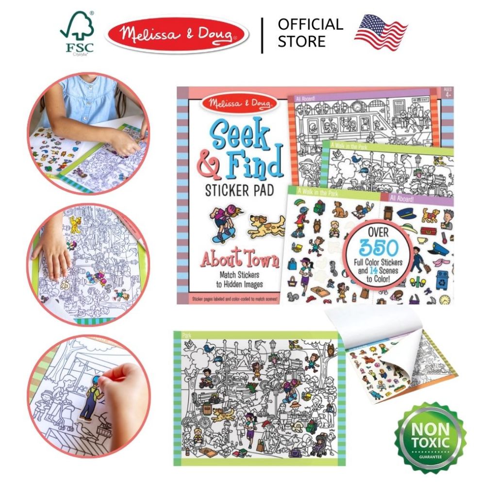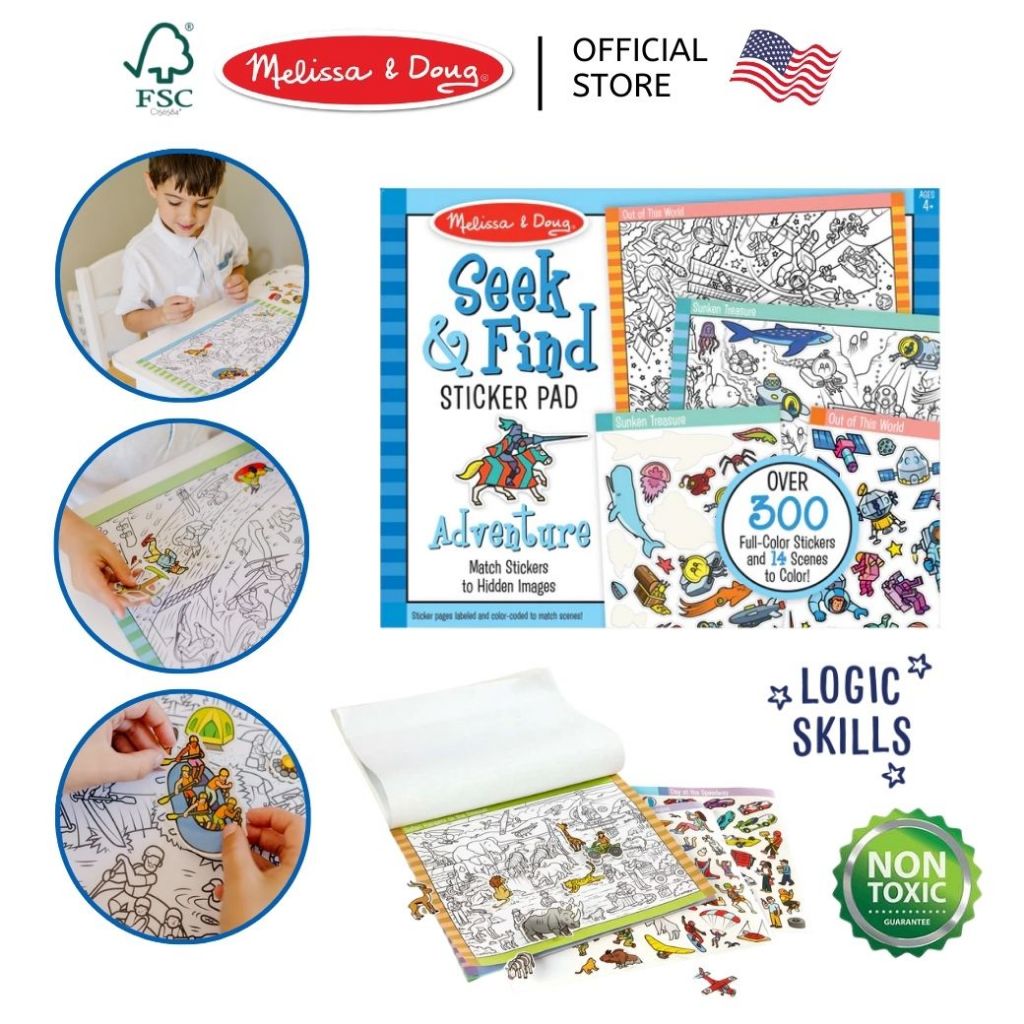 (แพ็คคู่) สุดคุ้ม! สติ๊กเกอร์เสริมสมาธิ เกมซ่อนหาภาพ Seek & Find Sticker Pad Melissa Doug ศิลปะ
