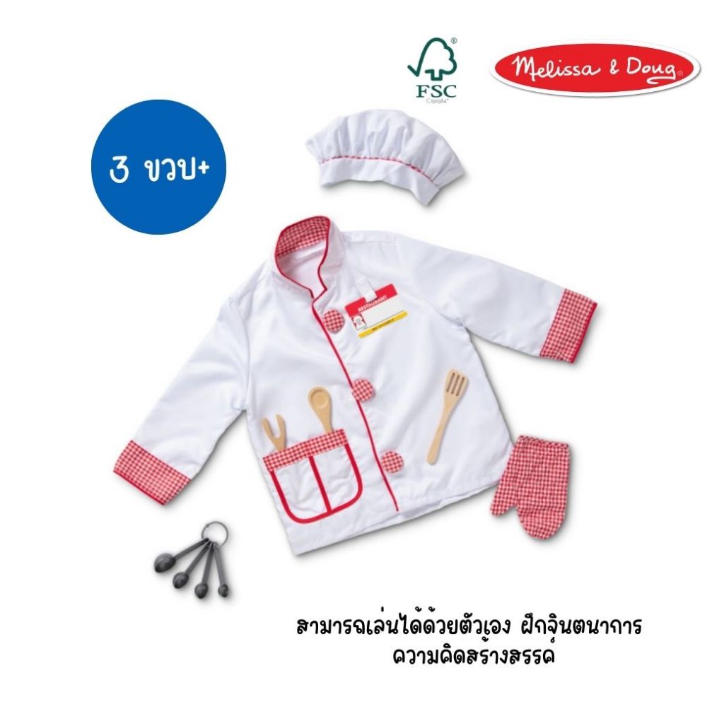 (ของแท้ USA) ฟรีไซส์สูง 100-140 cm ชุดเชฟเด็ก พ่อครัว ชุดแฟนซี Melissa Doug Chef Costume อาชีพ 4838