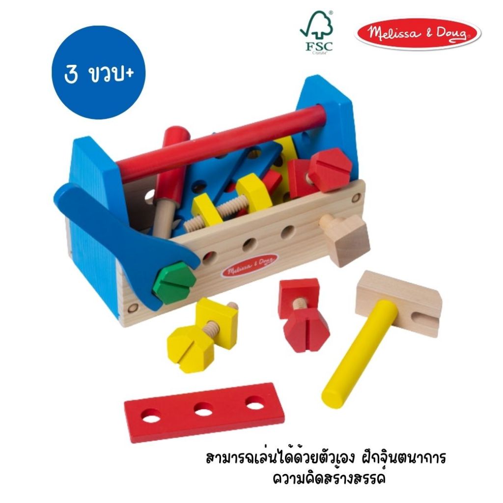 (ของแท้ USA)ของเล่นเครื่องมือช่าง บล๊อกต่อ Take Along Construction Tool Kit Melissa Doug ของเล่น 494