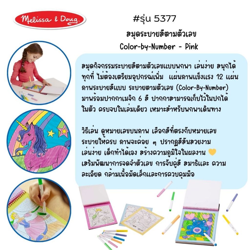 (ของแท้ USA) สมุดระบายสีตามตัวเลข สีล้างออก non-toxic Melissa & Doug Color by Number พกพาสะดวก 5377