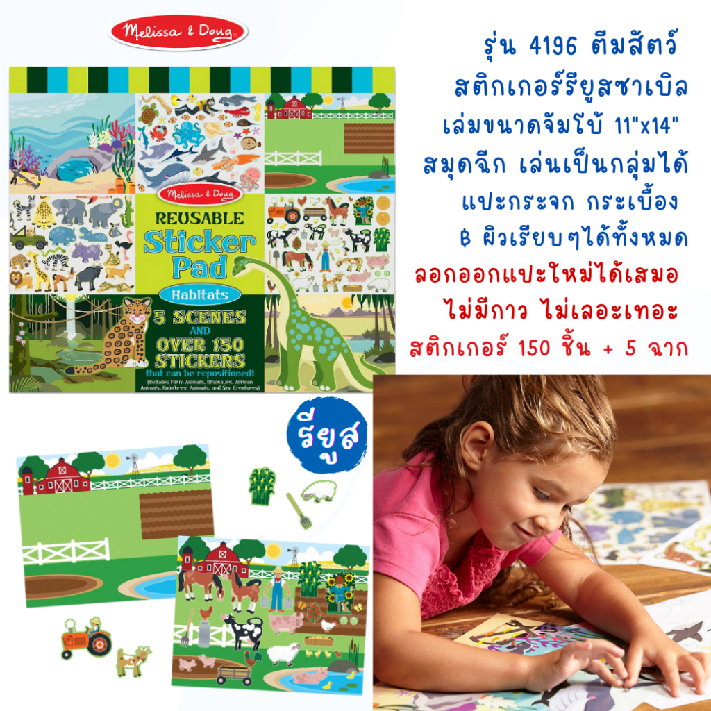 (แพ็คคู่) สุดคุ้ม! สมุดสติ๊กเกอร์ สติ๊กเกอร์แปะซ้ำได้ Reusable Sticker Melissa Doug ชิ้นใหญ่ ถนัดมือ