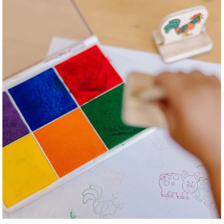 (ของแท้ USA) แท่นหมึกสแต๊มป์ 6 สี ล้างออกได้ งานศิลปะเด็ก Non-toxic Washable Rainbow Stamp Pad 1637