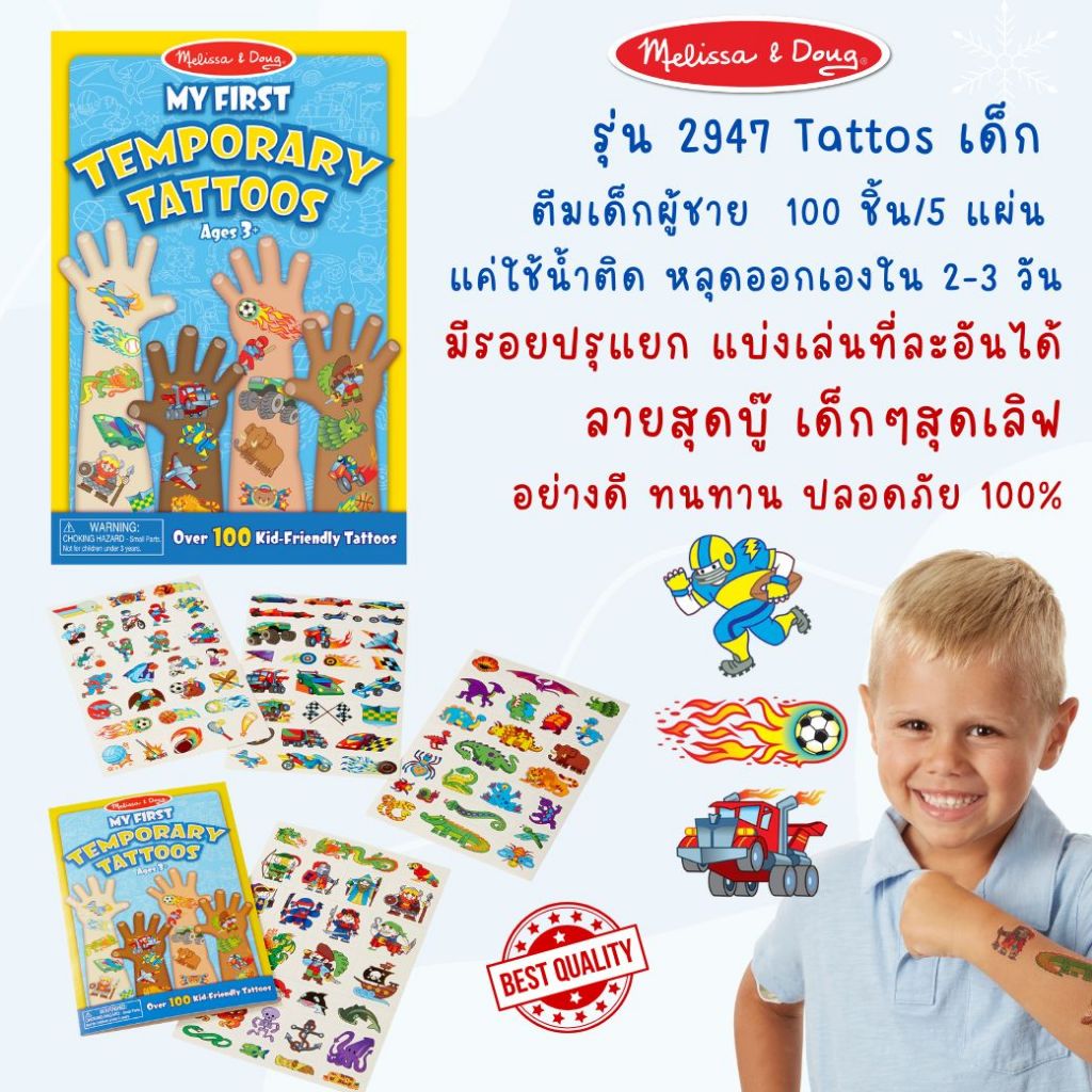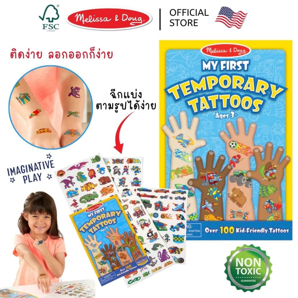 (ของแท้ USA) สติ๊กเกอร์แทททูเด็ก ปลอดภัย 100% Non Toxic Tattoo Sticker รอยสัก Melissa & Doug ติดง่าย