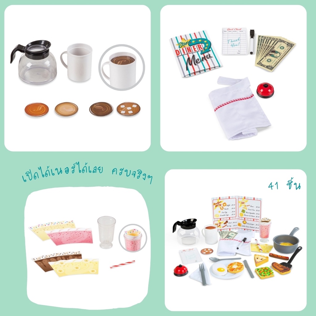 (ของแท้ USA)ของเล่นร้านอาหาร เสิร์ฟกาแฟ ชุดครัว กระดิ่ง Melissa Doug Diner Restaurant Accessory 5188