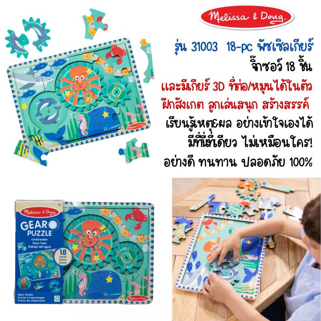 (ของแท้ USA) ของเล่น STEM จิ๊กซอไม้ ฟันเฟืองเสริมตรรกะ Animal Wooden & Sea Gear Puzzle Melissa Doug