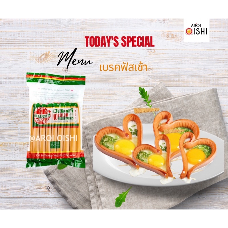 บีลัคกี้ ไส้กรอกหมู 8” (Belucky) 1 กก. (15 ชิ้น) ไม่ใส่สี ไม่ใส่สารกันบูด