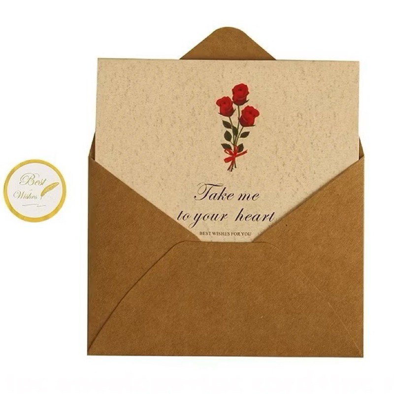 ‼️พร้อมส่ง‼️3ชิ้น/เซ็ตวินเทจซองจดหมายที่มีการ์ดอวยพรสติกเกอร์ซีล