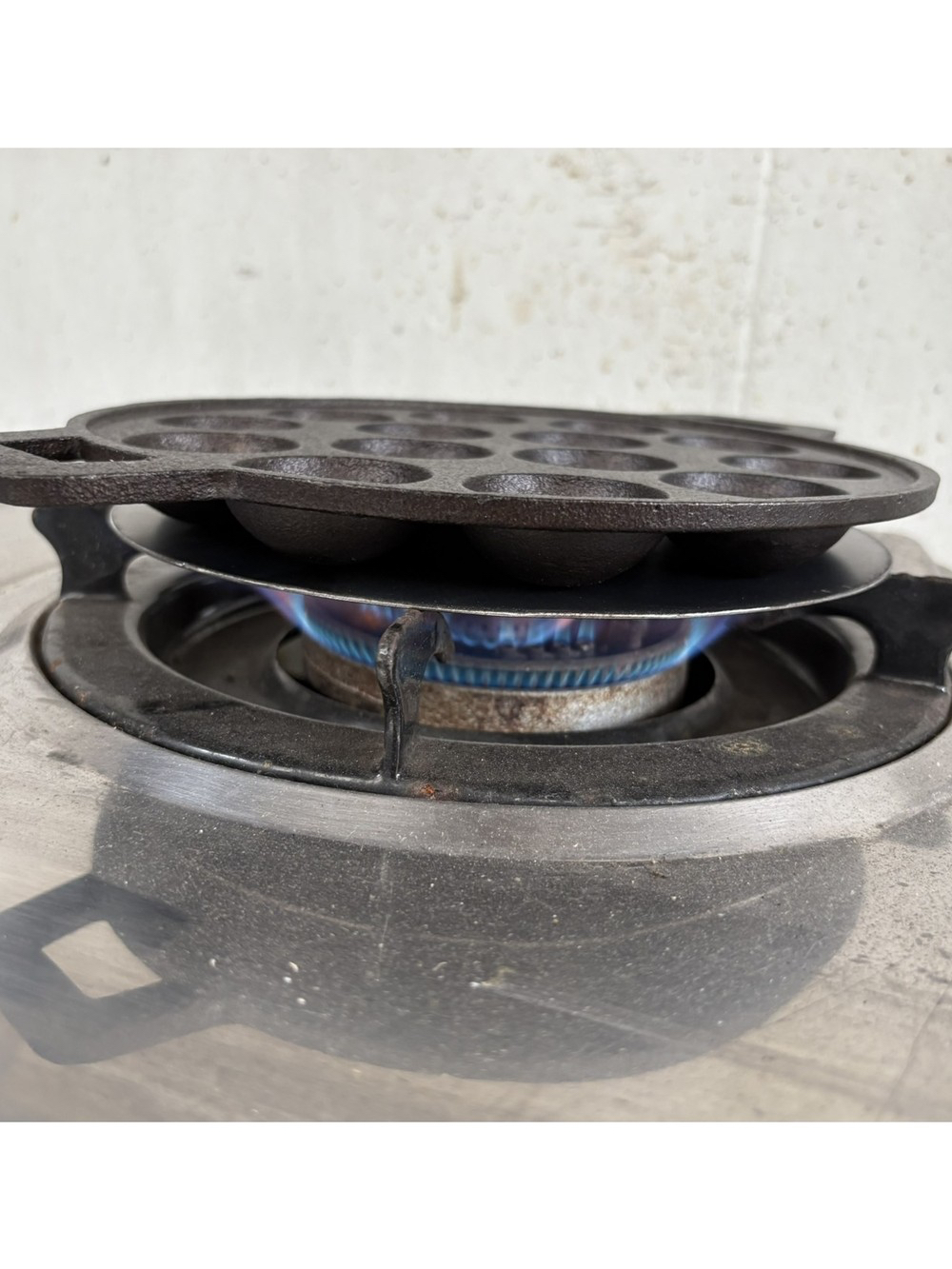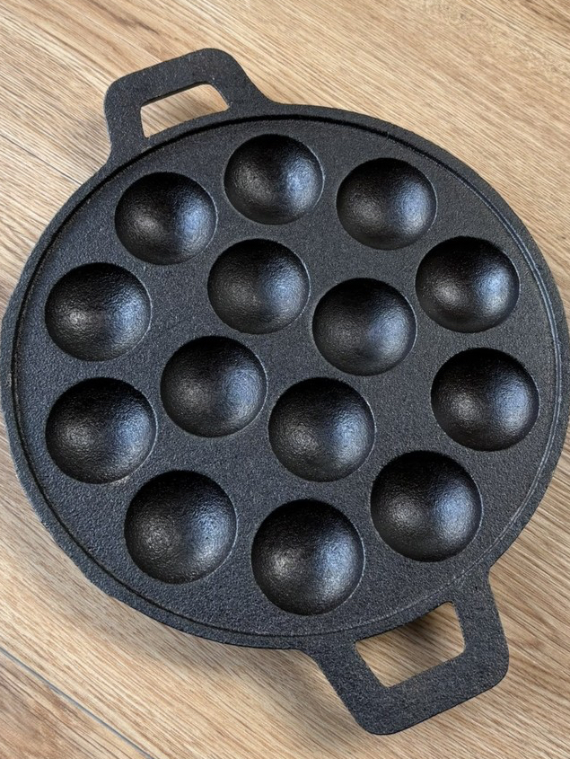กระทะขนมครก 14 หลุม (กระทะขนาด 9 นิ้ว) เผาผิวดำอย่างดี ใช้ทำขนมครก ทอดไข่นกกระทา ใช้เตาแก็สบ้านได้