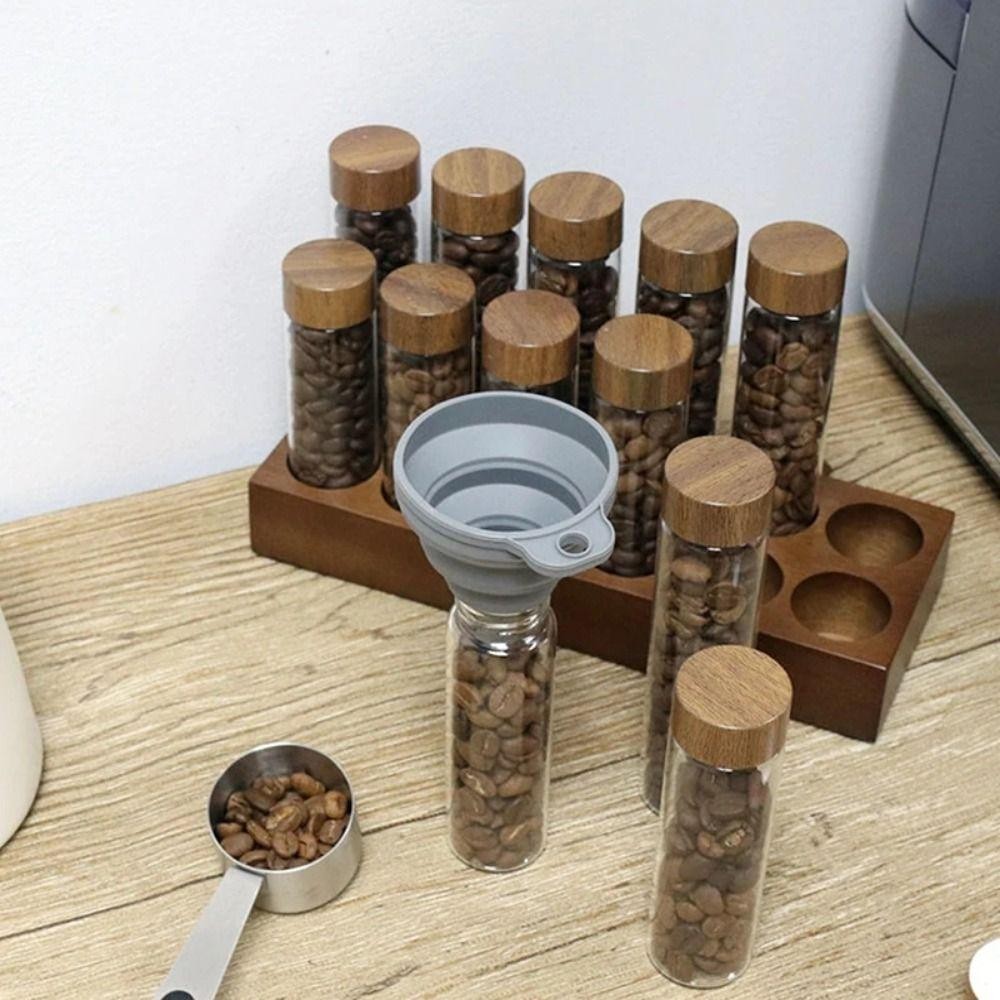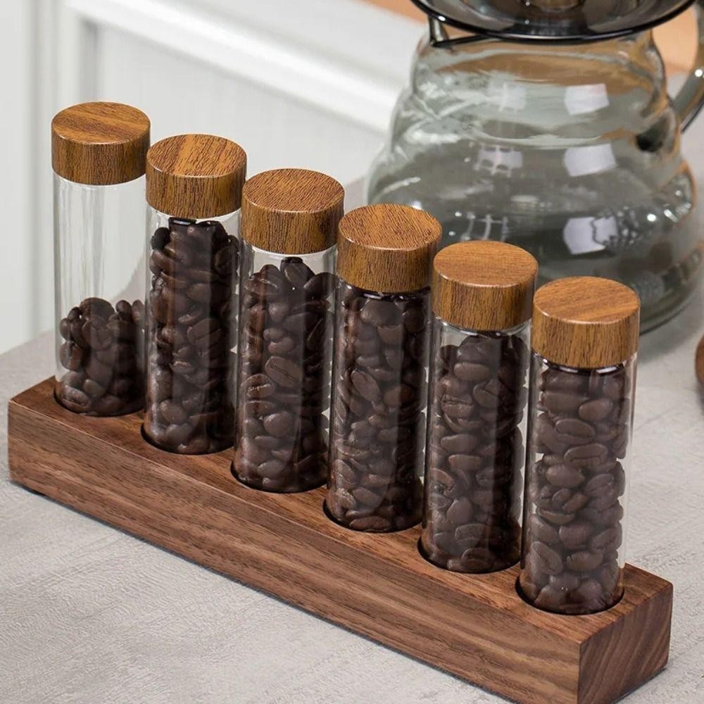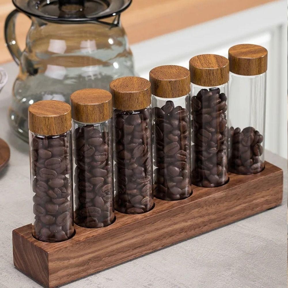 Needway เมล ็ ดกาแฟคอนเทนเนอร ์ , ไม ้ วอลนัทแบบพกพาชาหลอดจอแสดงผล Rack, Espresso อุปกรณ ์ เสริมสะดวกพร ้ อมฝาปิดระบายอากาศหลอดชาขวดกาแฟ Bean Storage