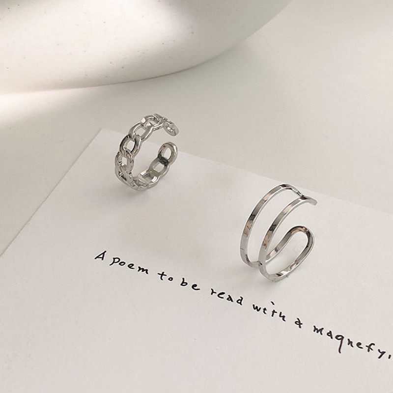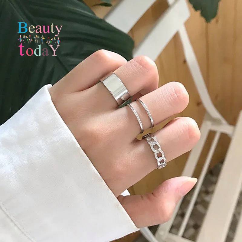 ชุดแหวนแฟชั่น เรียบง่าย ทรงเรขาคณิต สําหรับผู้หญิง 3 ชิ้น