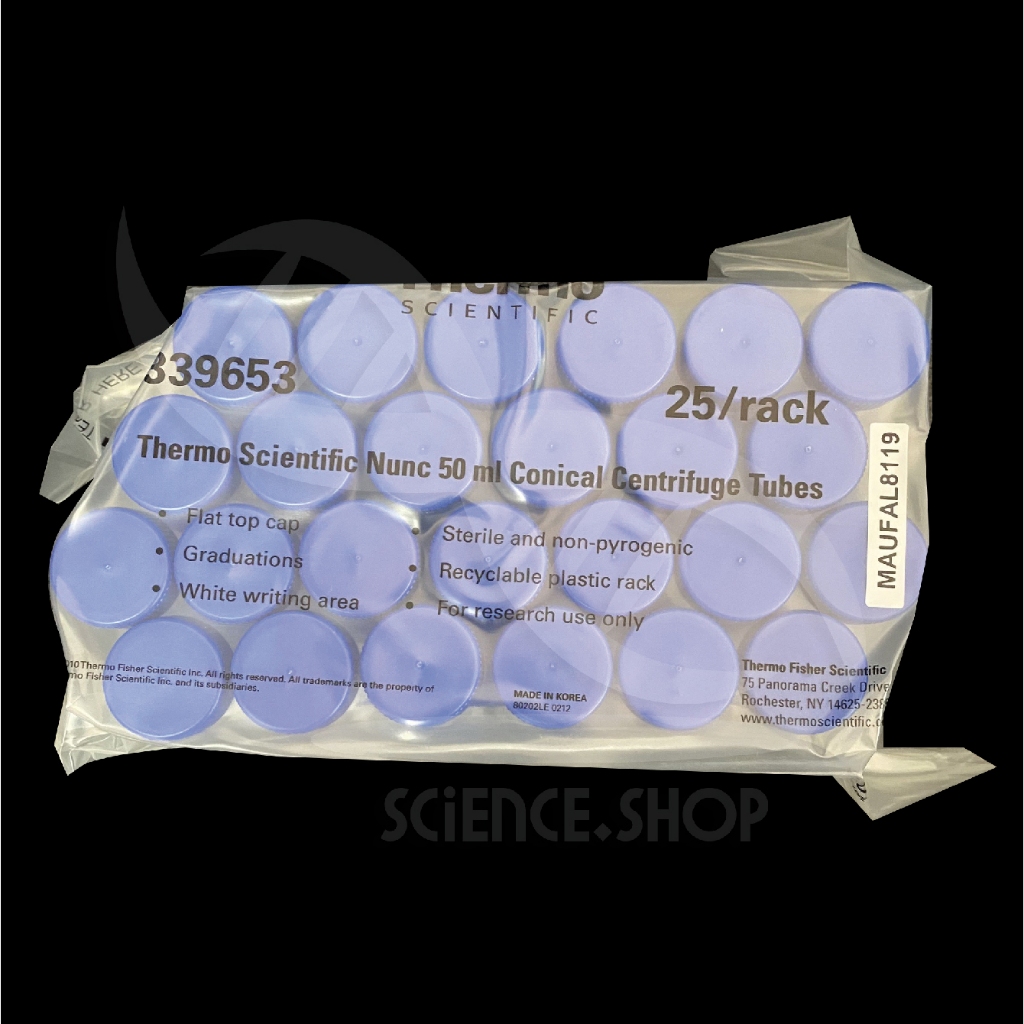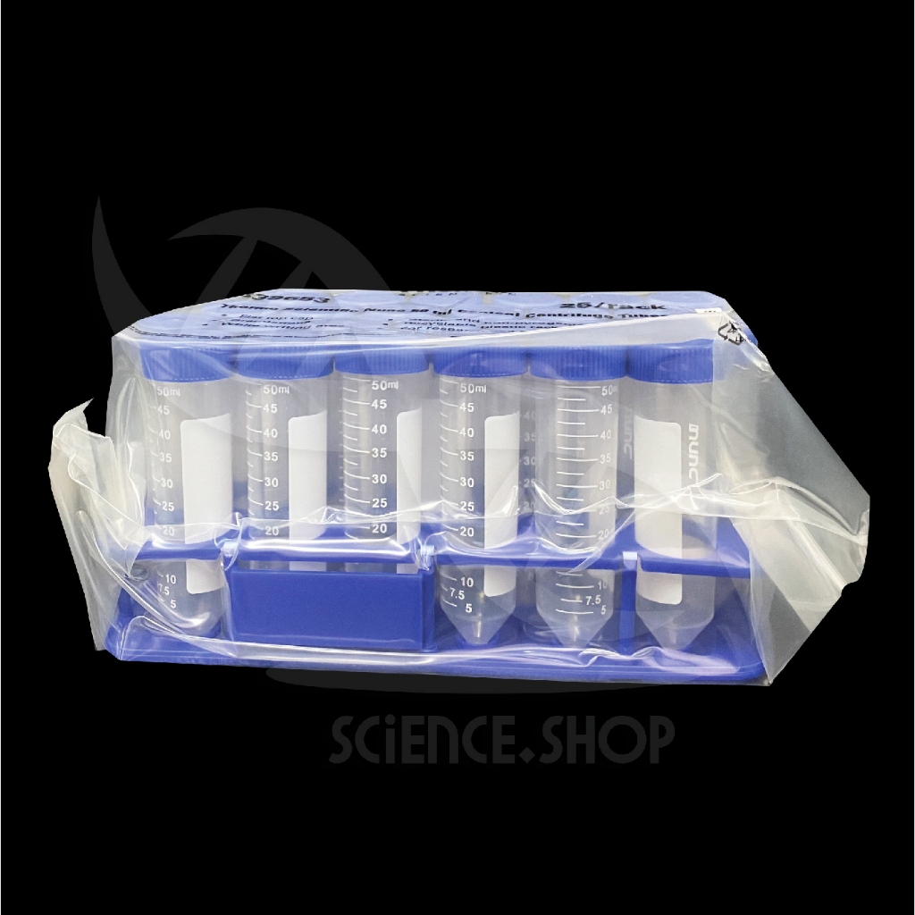 หลอดเซนติฟิวก์ปราศจากเชื้อ Conical centrifuge tube ขน าด 50ml ยี่ห้อ nunc 25 หลอด พร้อมแท่นวาง (rack)