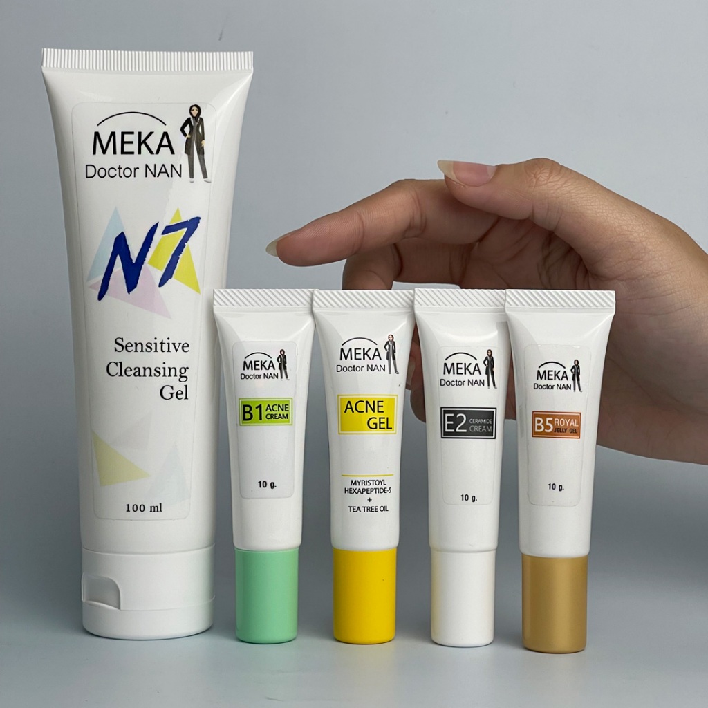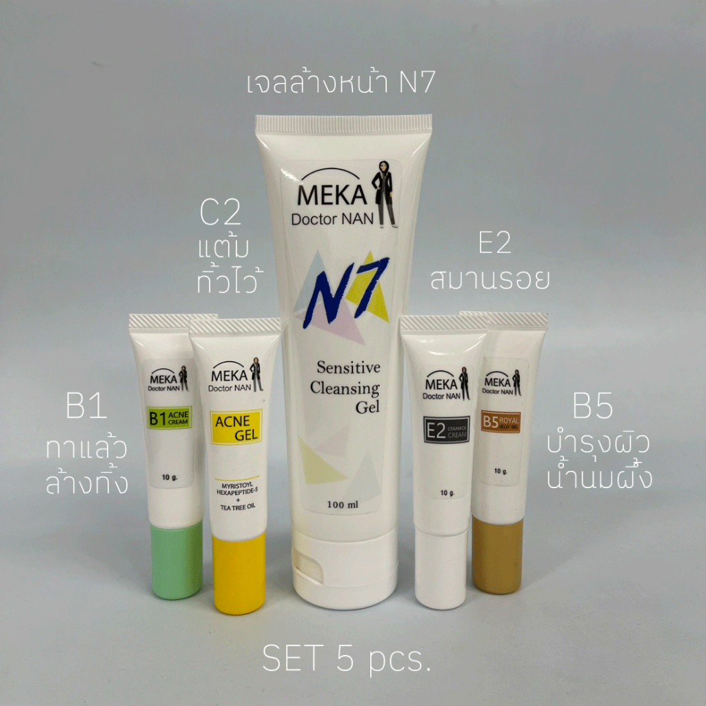 ชุดเซท 5 ชิ้น สำหรับผิวที่เป็นสิวอุดตัน สิวอักเสบ ผิวติดสาร สิวเห่อ ผิวเป็นรอยสิวทิ้งนานรูขุมขนกว้าง