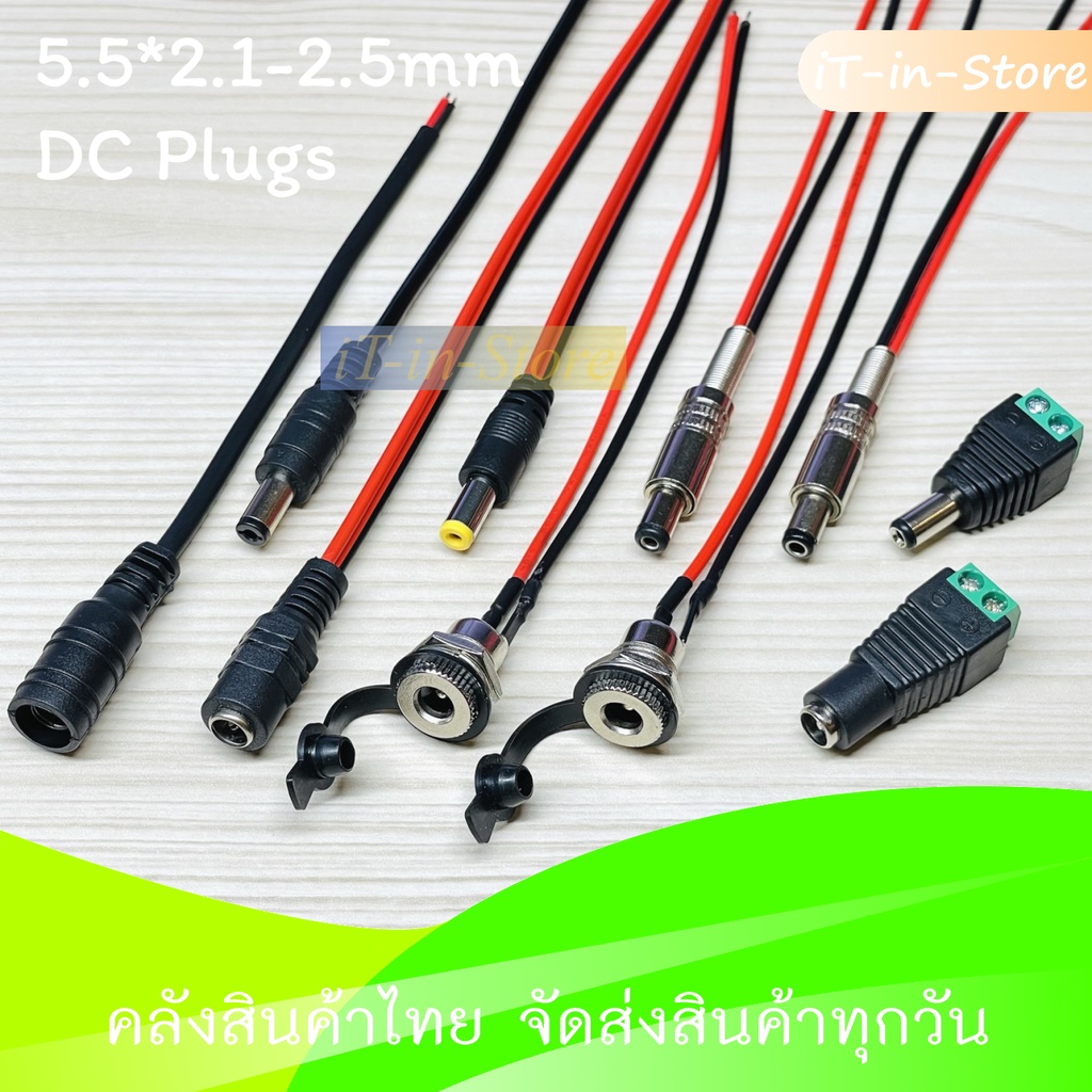 DC Jack Connector ตัวผู้ ตัวเมีย 5.5*2.1 - 5.5*2.5 mm Female Male Power Plug