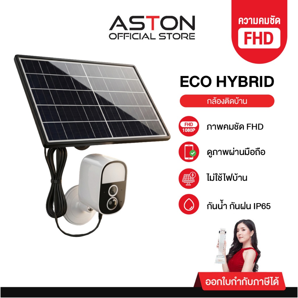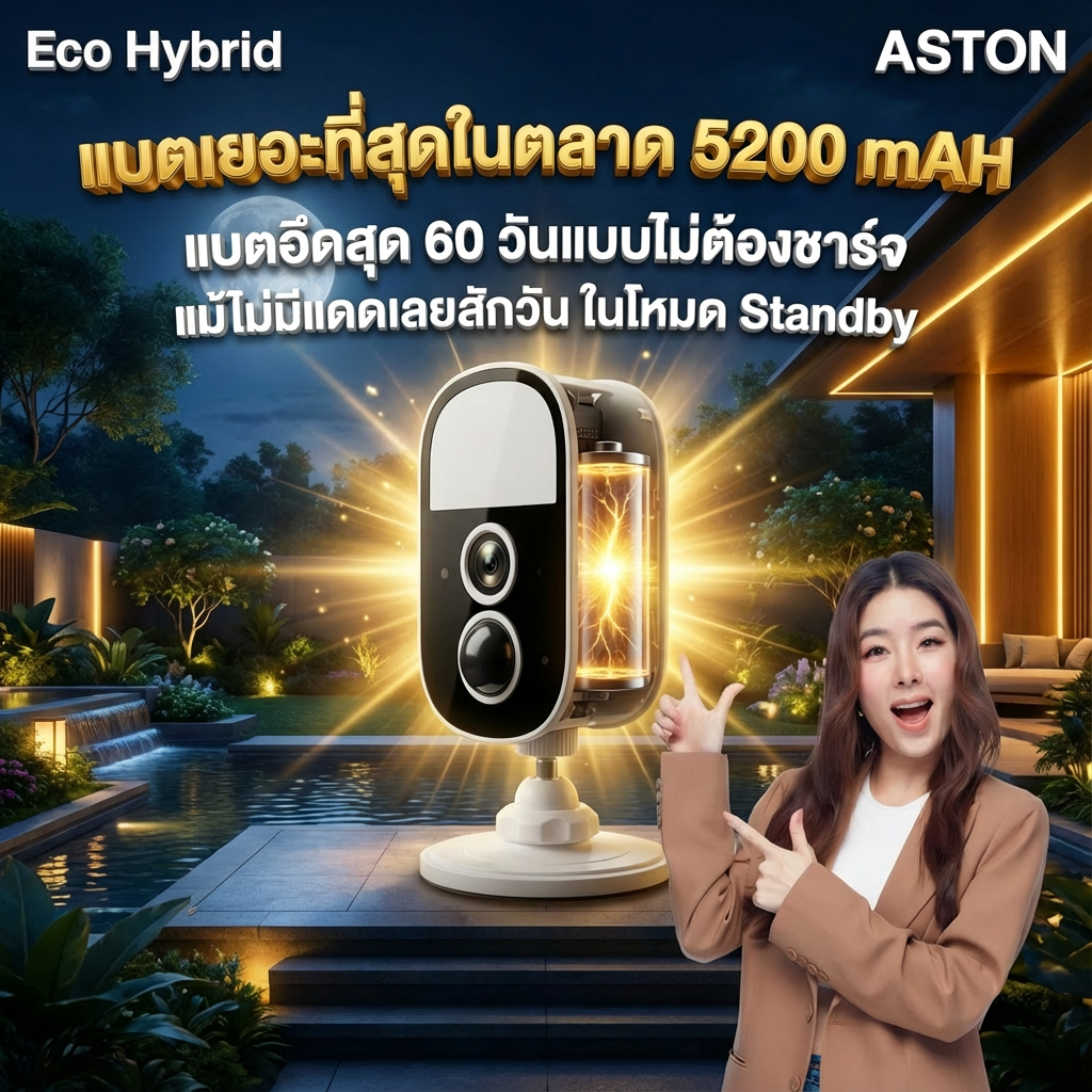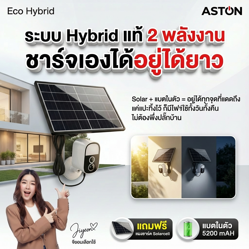 Aston Eco Hybrid กล้องวงจรปิดไร้สาย โซล่าเซลล์ แบตในตัว ฐานแม่เหล็ก ไม่ต้องเจาะผนัง ไม่ต้องเดินสาย ไฟ ชัดFHD ประกัน 1 ปี