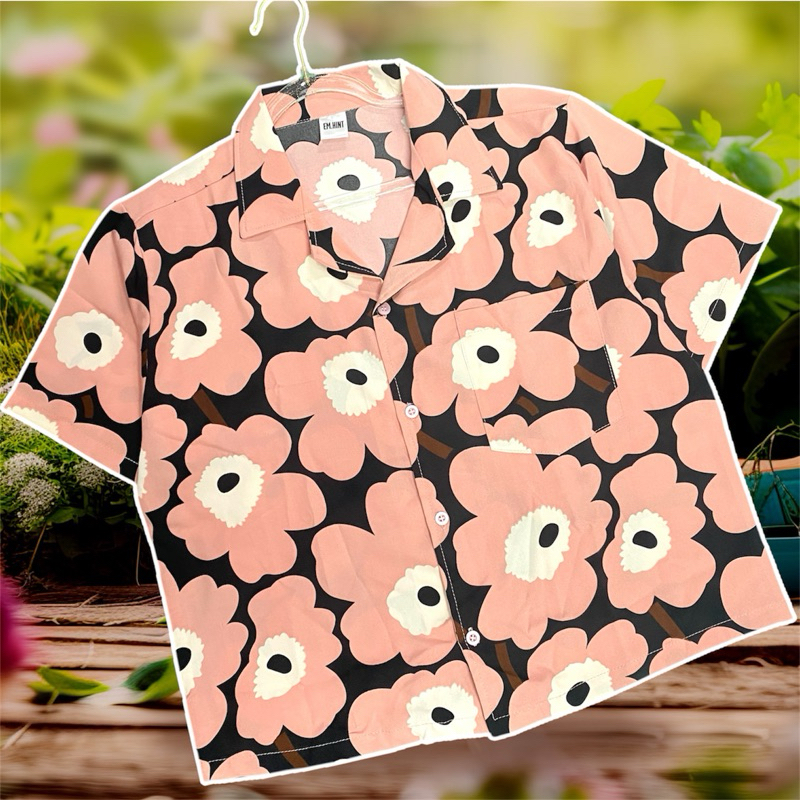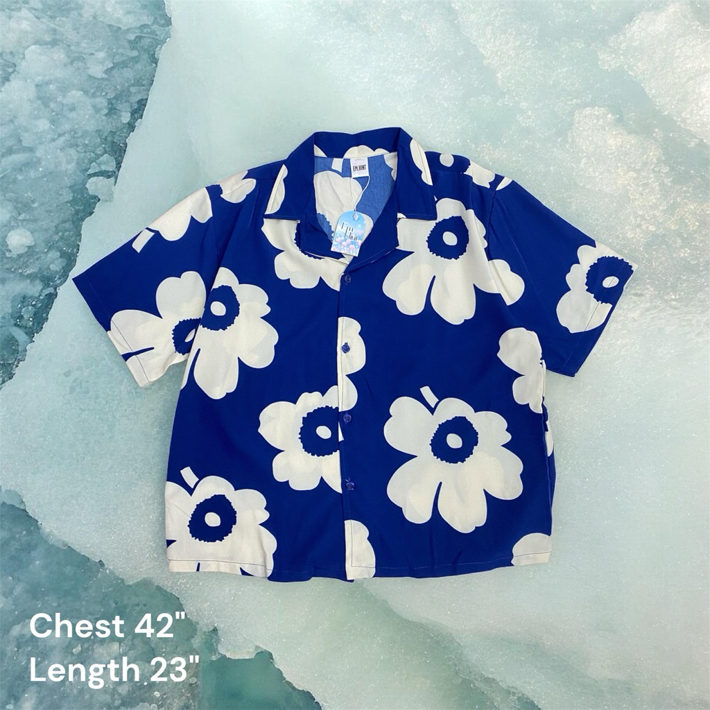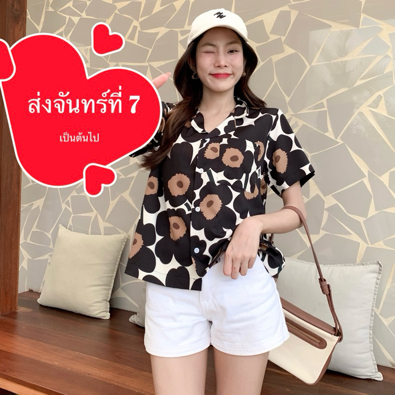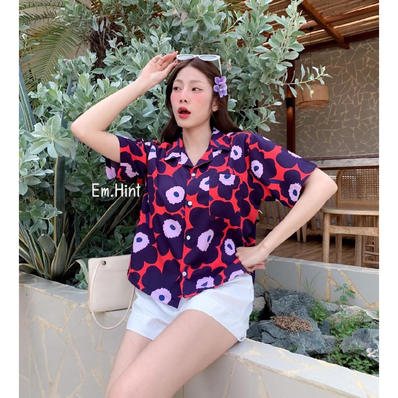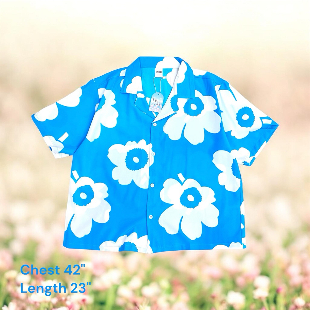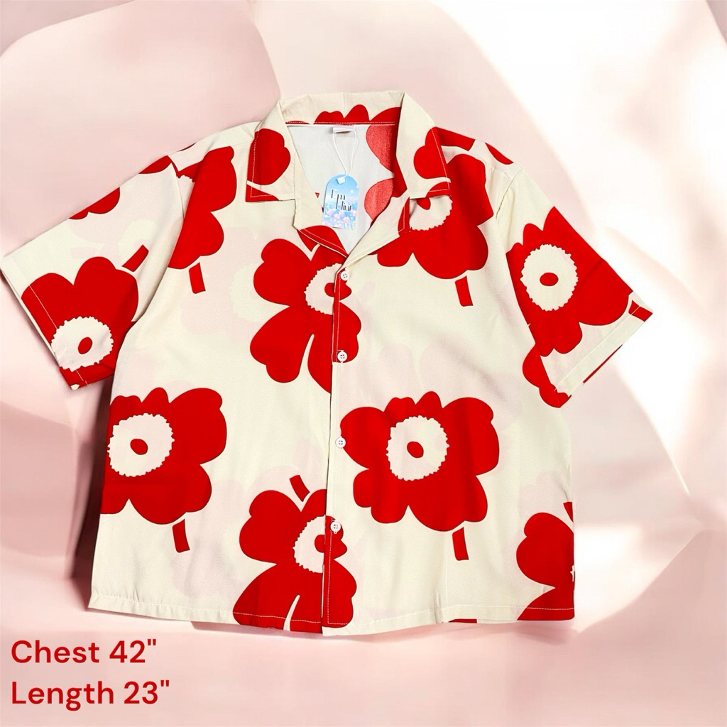 S28 เสื้อเชิ้ต ฮาวาย ลายดอกไม้ ใส่สบาย Free size ผ้าอก40"