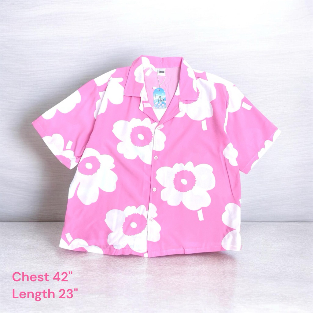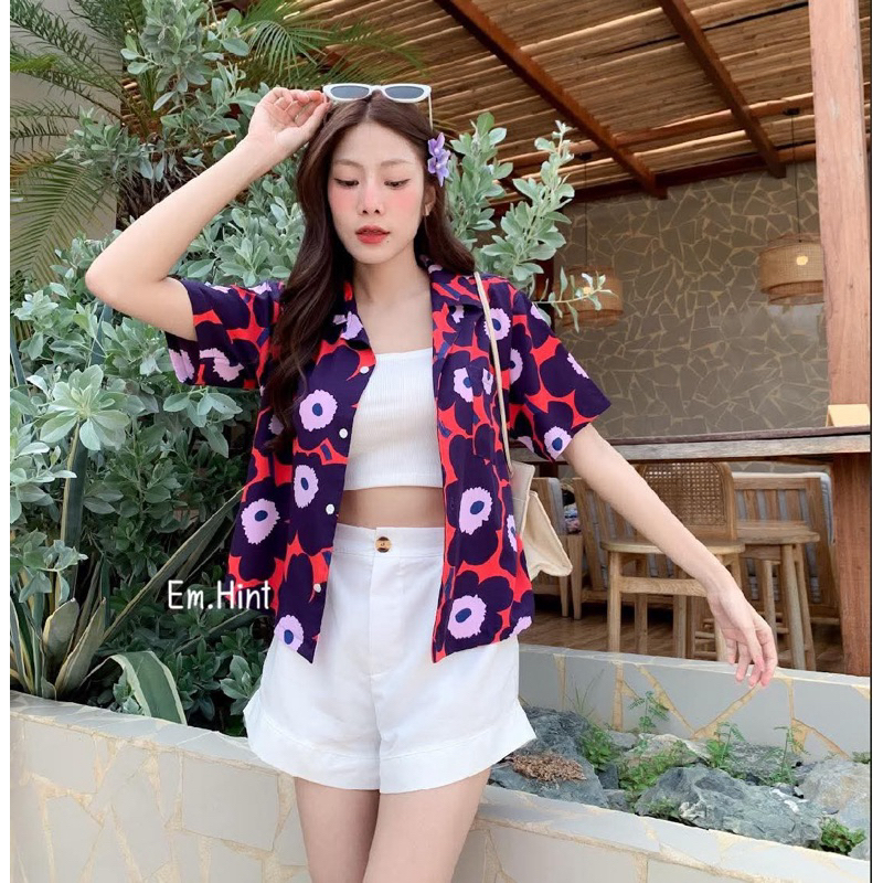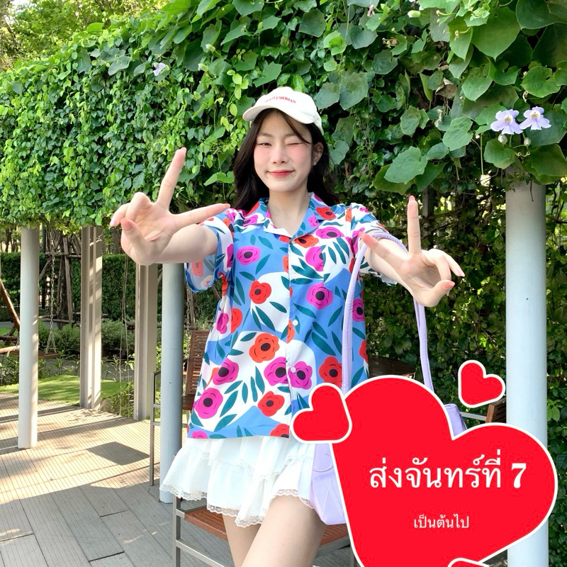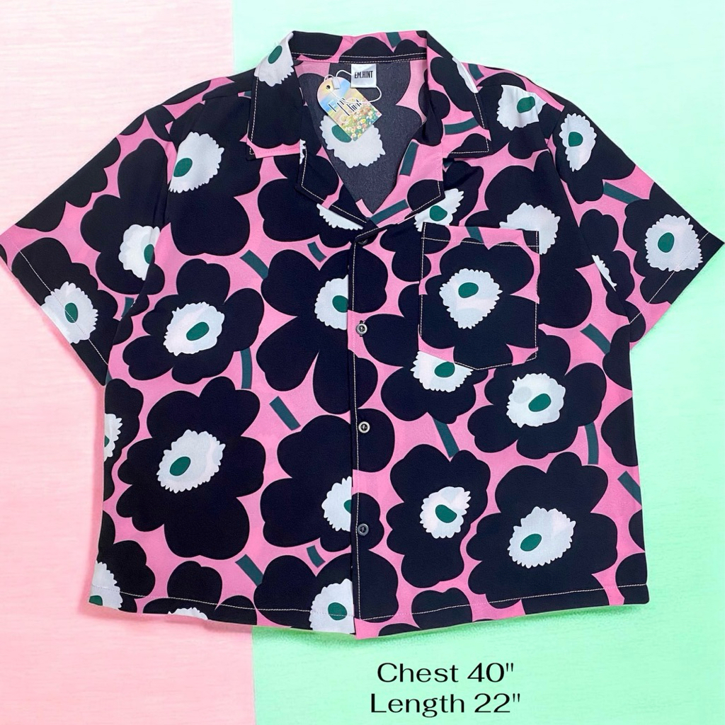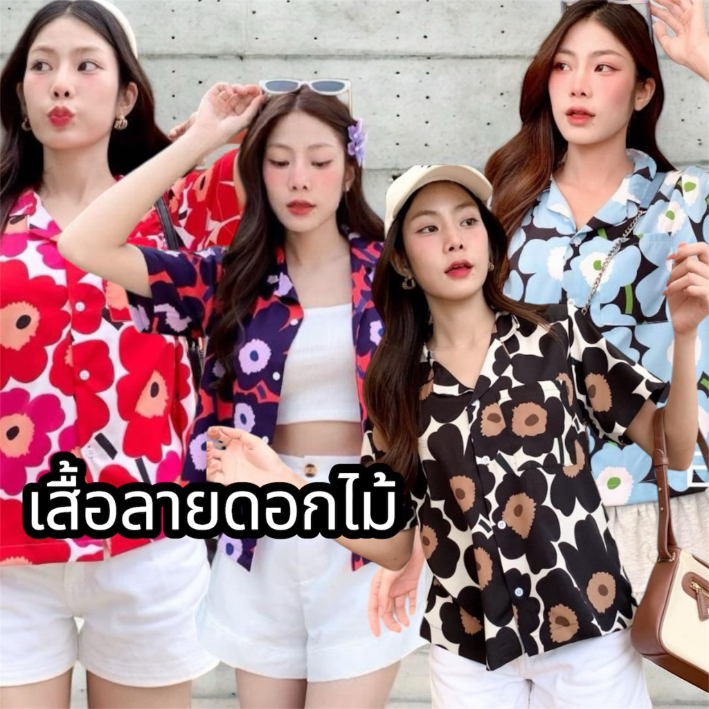 S28 เสื้อเชิ้ต ฮาวาย ลายดอกไม้ ใส่สบาย Free size ผ้าอก40"