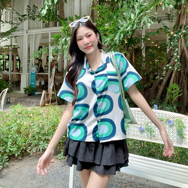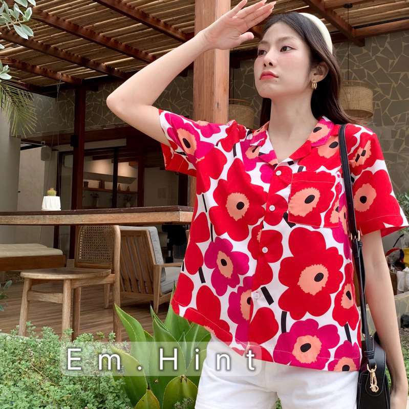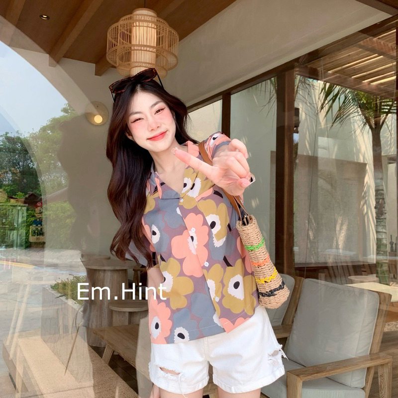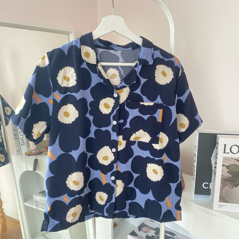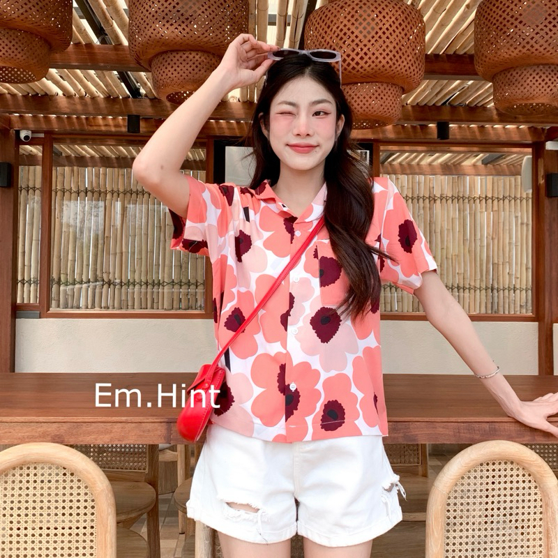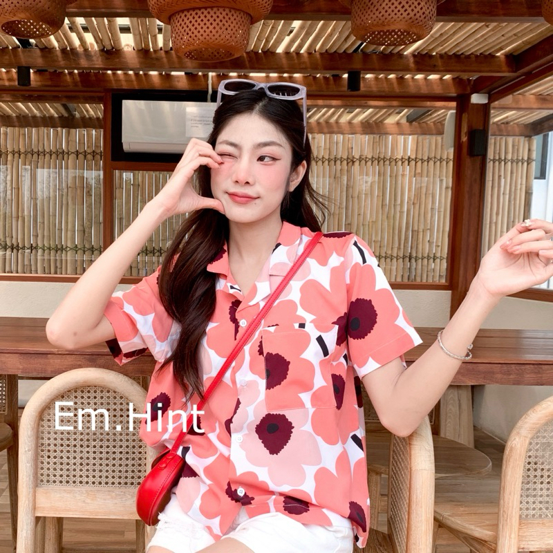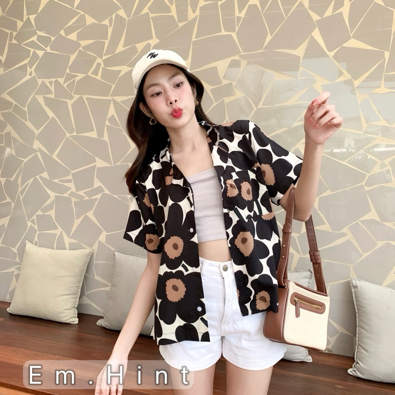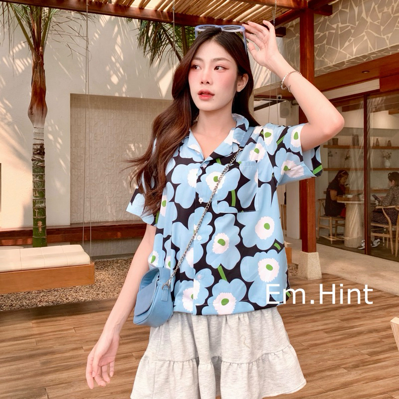 S28 เสื้อเชิ้ต ฮาวาย ลายดอกไม้ ใส่สบาย Free size ผ้าอก40"