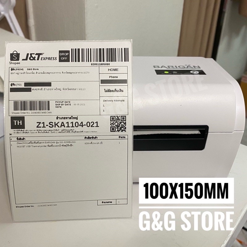 (แบบ 10 พับ) BARIGAN 100x150mm กระดาษความร้อนสติ๊กเกอร์ Thermal Sticker Label