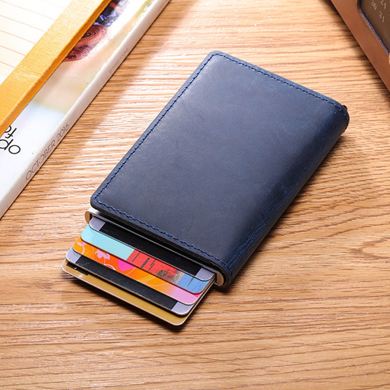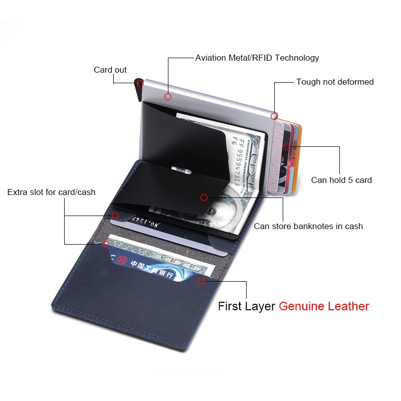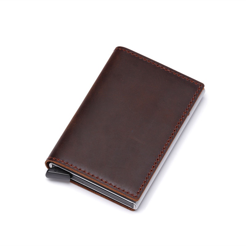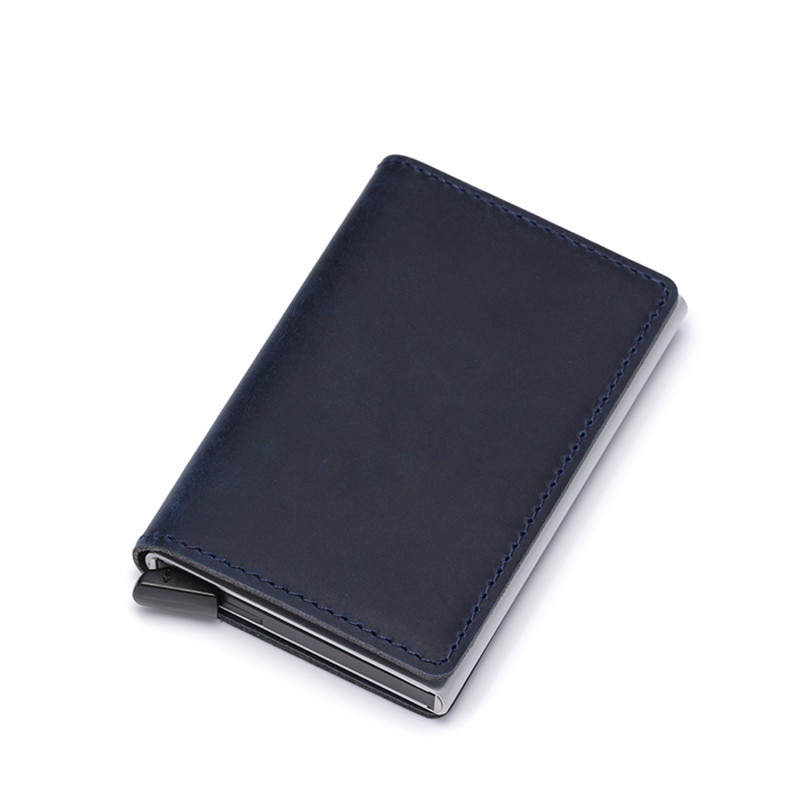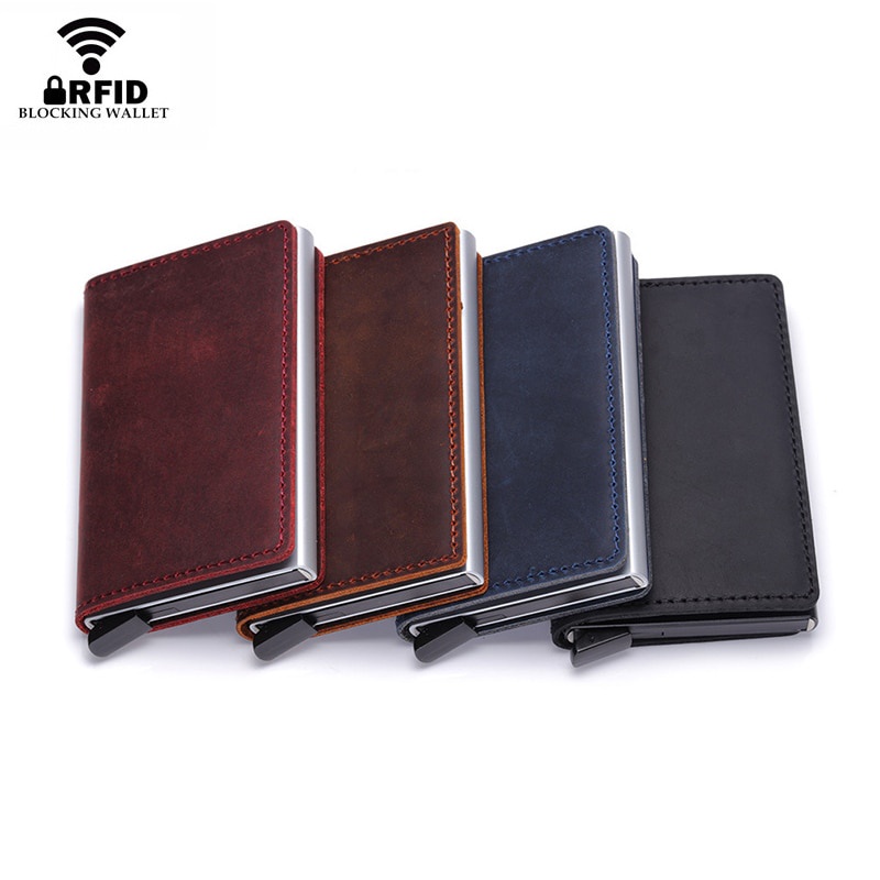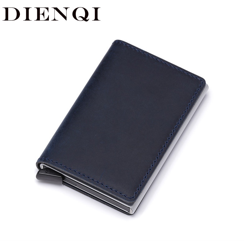 DIENQI Genuine Leather Men Wallet Rfid Mini Wallet Small Slim Metal Male Purse Thin Walet Money Bag Luxury Vallet