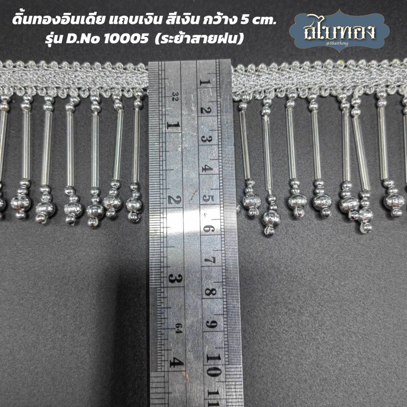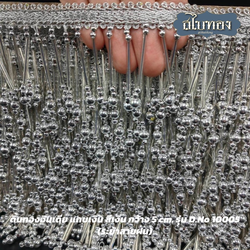 ดิ้นทองอินเดีย ตุ้งติ้ง ระย้า สีเงิน กว้าง 5 cm. รุ่น D.No 10005 (ระย้าสายฝน) [ราคาต่อหลา]