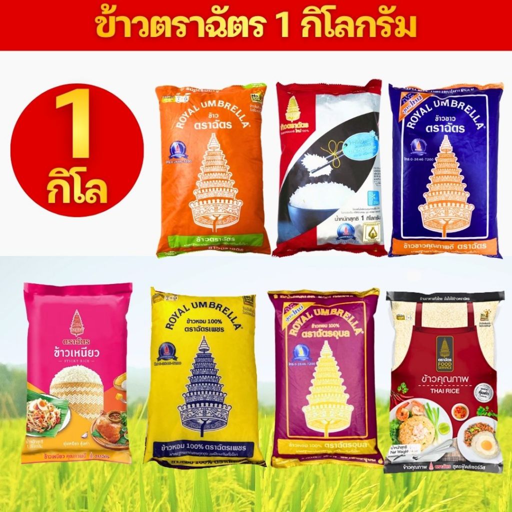 ข้าวตราฉัตร ฉัตรส้ม ฉัตรน้ำเงิน ฉัตรไลท์ ฉัตรเพชร ฉัตรทอง ฉัตรแดงดำ ฉัตรอุบล ข้าวหอมผสม ข้าวหอมมะลิ ถุง 1 กิโลกรัม