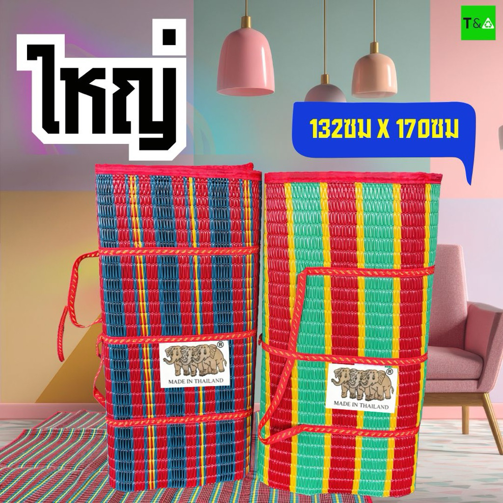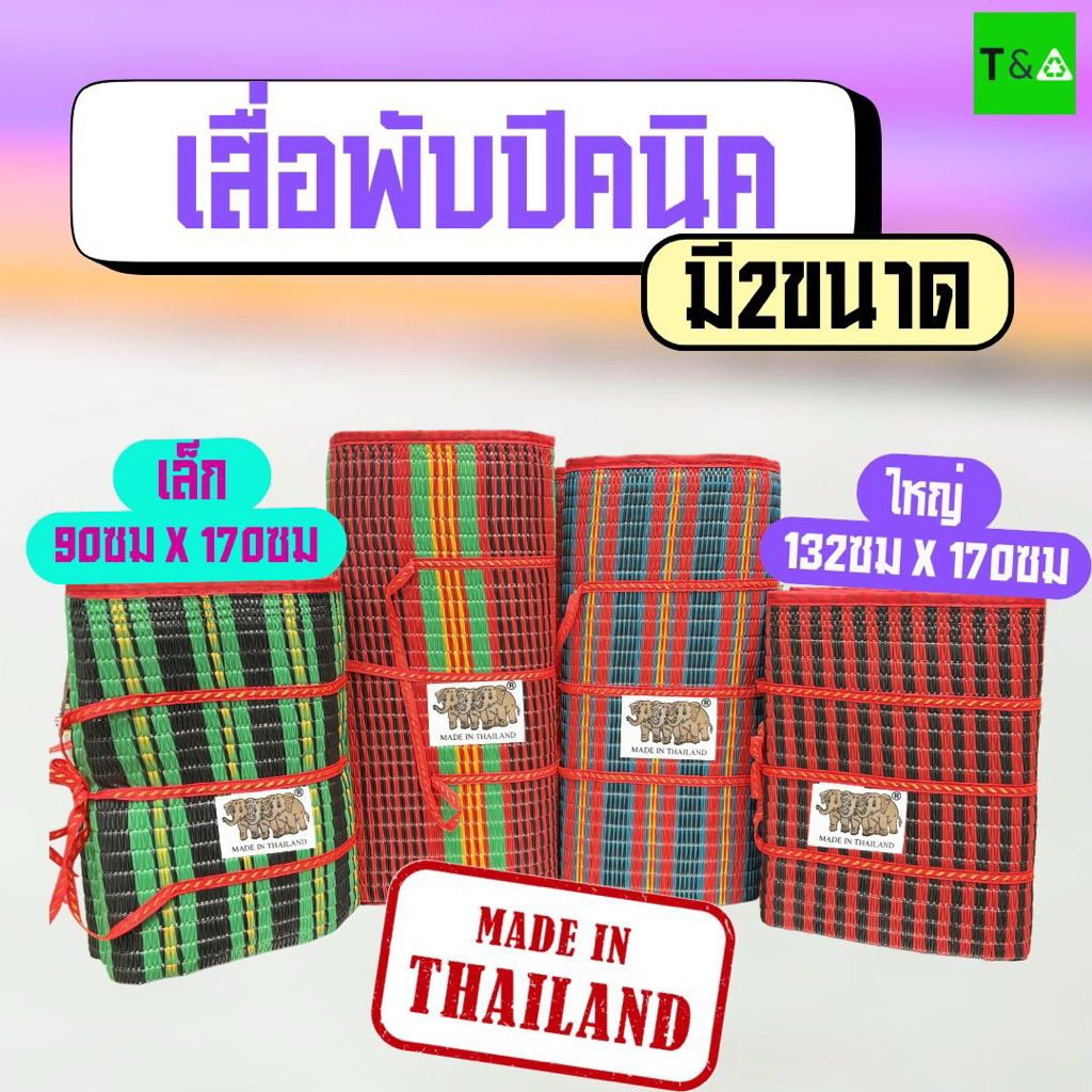 เสื่อพับปิคนิค 3พับ ตราช้าง3ตัว เสื่อพลาสติก มี2ขนาด มีเก็บเงินปลายทาง