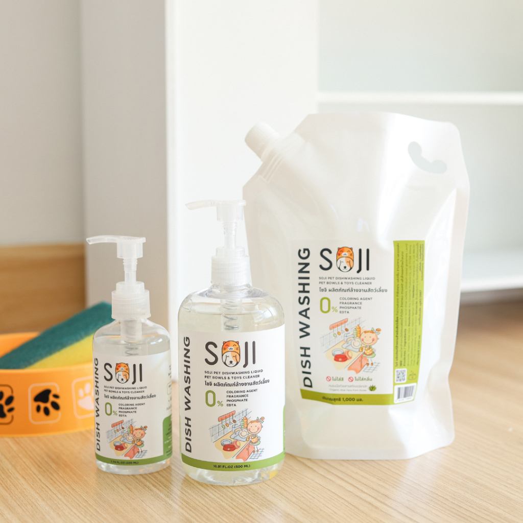 SOJI น้ำยาล้างจานสำหรับสัตว์เลี้ยง ไม่ใส่สี ไม่ใส่กลิ่น ไร้สารเคมีรุนแรง ปลอดภัยต่อสุนัขแมวและสัตว์เลี้ยง ล้างของเล่น